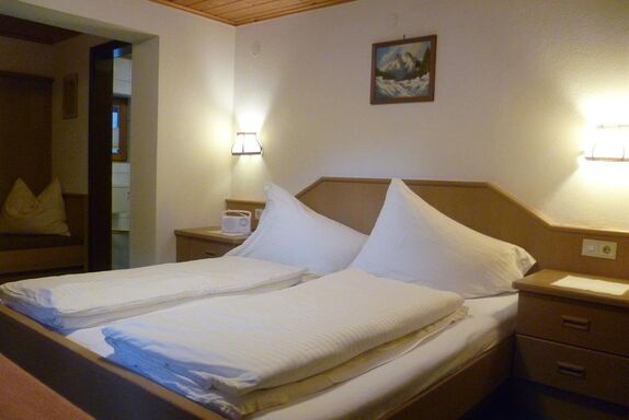 Ihr Doppelzimmer mit ca. 18 m² verfügt über ein Doppelbett und ein Badezimmer mit Dusche/WC. Das Zimmer ist nur ohne Frühstück buchbar - in ca. 150 m Entfernung befindet sich eine Bäckerei.