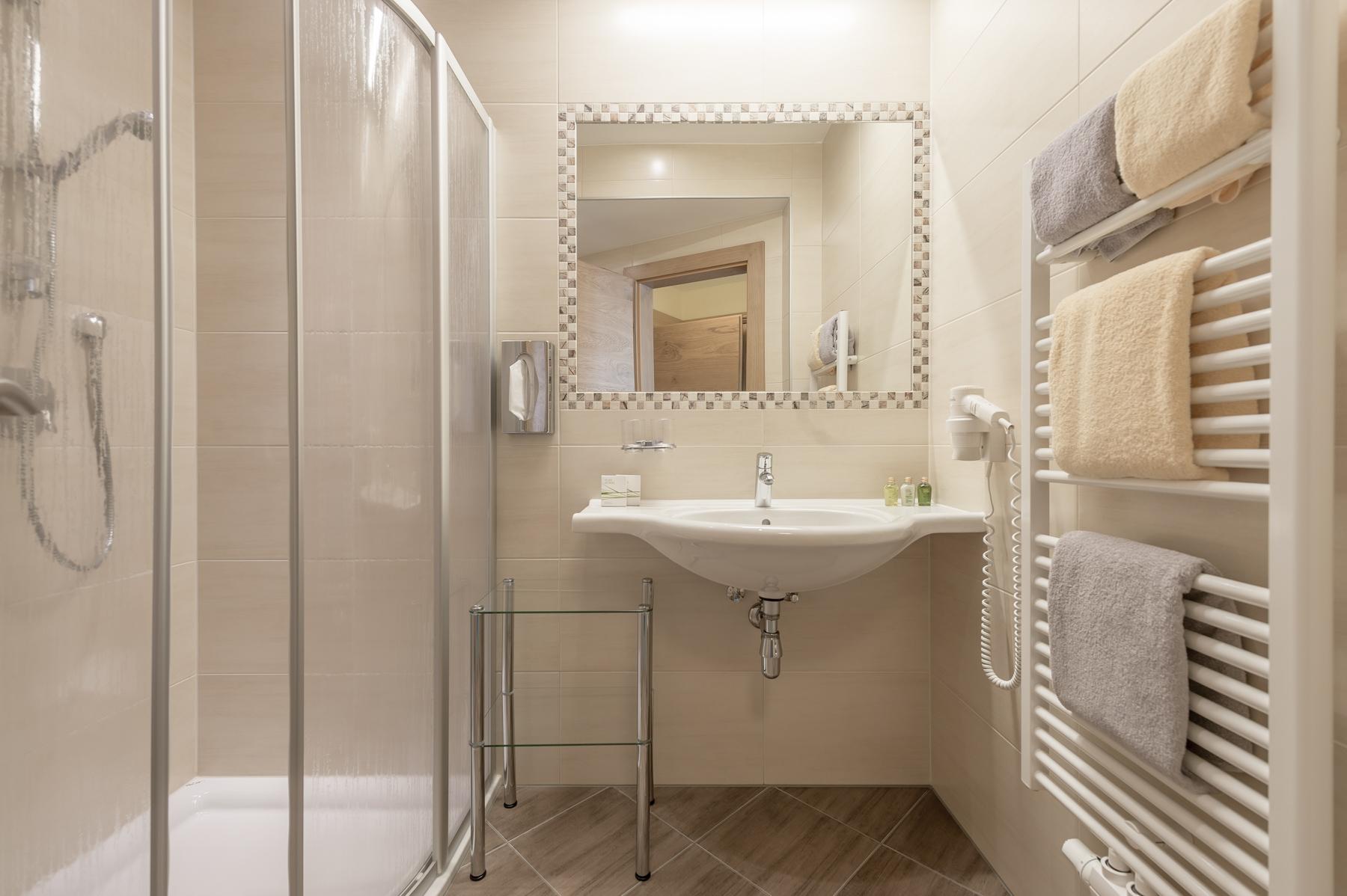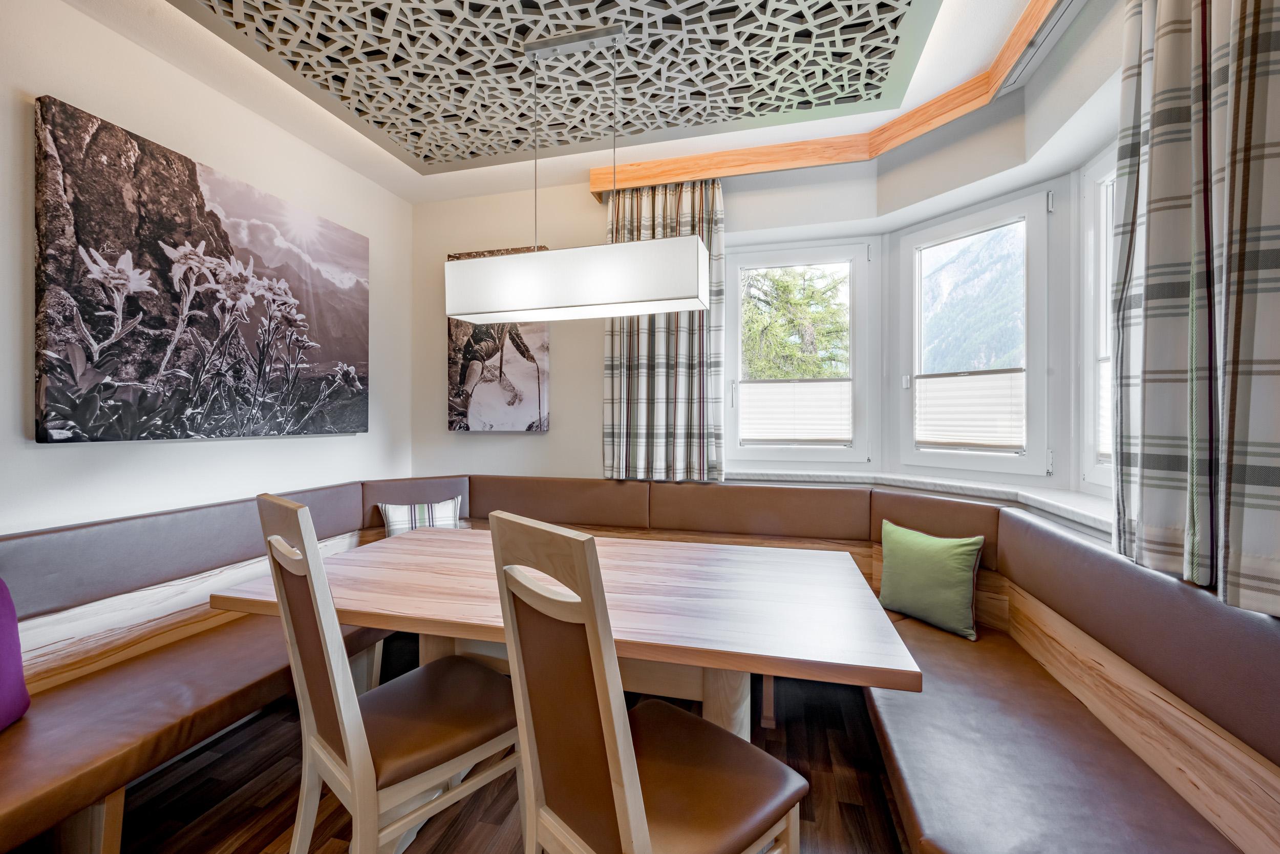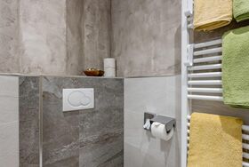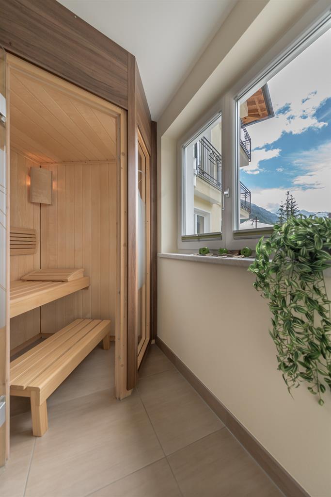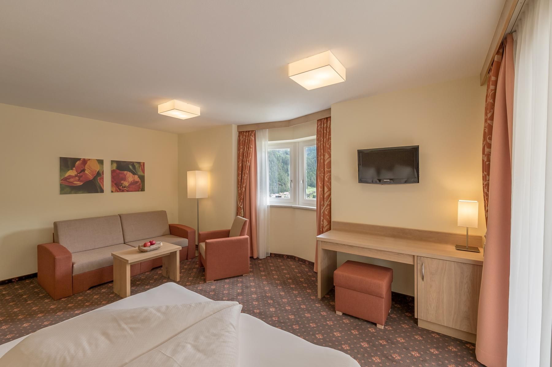 NEU - exklusive Suite (50m²) im modernen alpinen Stil mit zwei separaten Schlafzimmern (Verbindungstüre) jedes Zimmer mit DU/WC, Fön, beheizter Handtuchhalter, Safe, Flat-TV, gratis WLAN, gemütlichen Sitzbereich, jeweils kleinen franz. Balkonvorsprung mit traumhaftem Panorama Bergblick, Vorraum/Schrankraum;