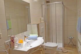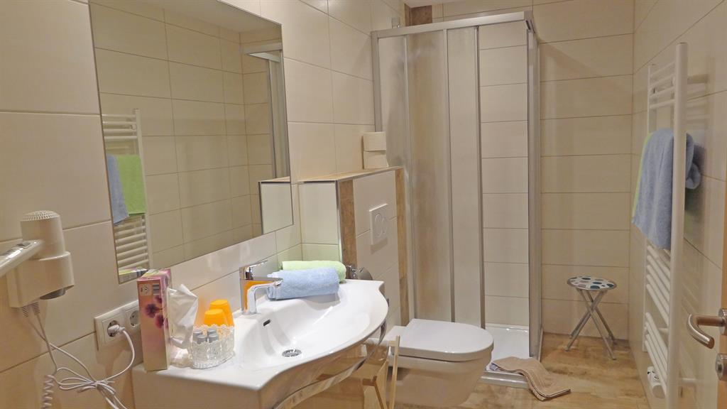 Außerhalb der Zimmers befindet sich ein Aufenthaltsraum mit Flat-TV, der jedoch von 2 weiteren Gästen benützt werden kann.