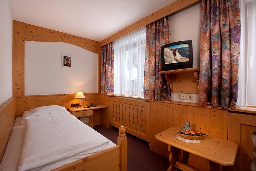 Einzelzimmer Superior mit Badezimmer mit Dusche/WC und Haarföhn, Sofa (Schlafmöglichkeit für eine 2. Person), Kabel-TV, Telefon, Safe und Wasserkocher und Gläser. Ohne Balkon. Größe ca. 16 m²