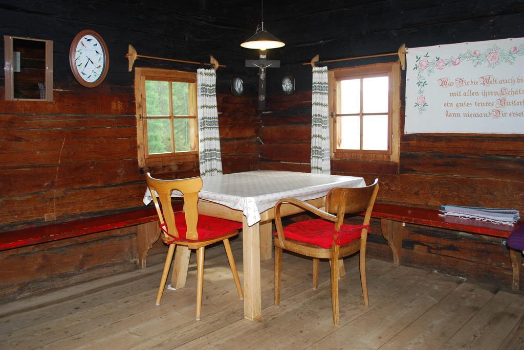 Die geräumige Almhütte bietet Platz für 9 Personen. Es ist auch ein Badezimmer mit Dusche und WC eingebaut. Schöne sonnige Lage und Aussicht.