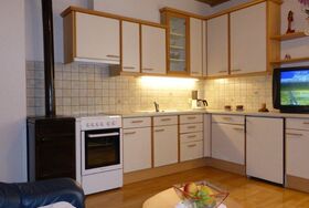 Das Appartement befindet sich im freistehenden Untergeschoss (6 Fenster). Besonders schätzten die Gäste die große Wohnküche mit gemütlicher Eckbank, den Holzofen, die ausziehbare Couch (inkl.Zusatzbett gg. Aufpreis) und die gut ausgestattete Küche.