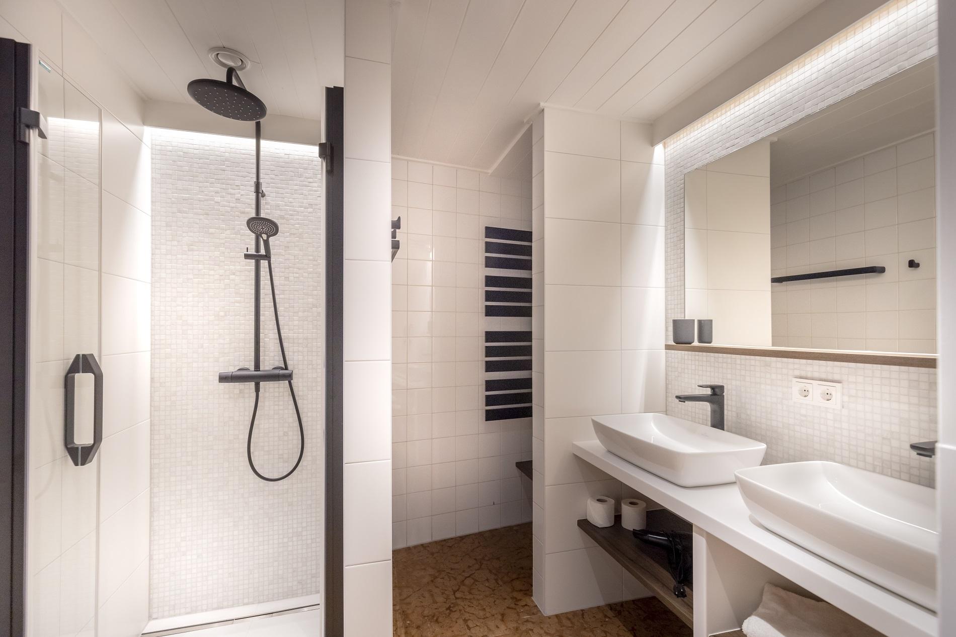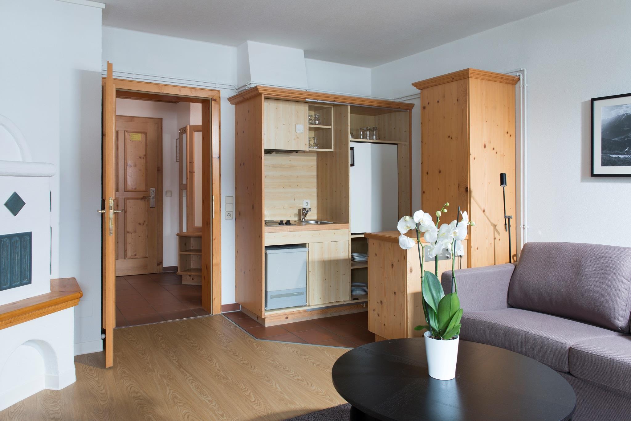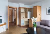 Schlazfzimmer, Wohnraum mit Ausziehcouch für die 3. und 4. Person, Vorraum, Bad, separates WC, eigene Sauna, Sitzecke, Kochnische, Geschirrspülmaschine, SAT-TV, Radio, Telefon, Balkon oder Terasse, Kleidertrockenschrank, kostenloses Internet