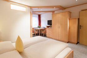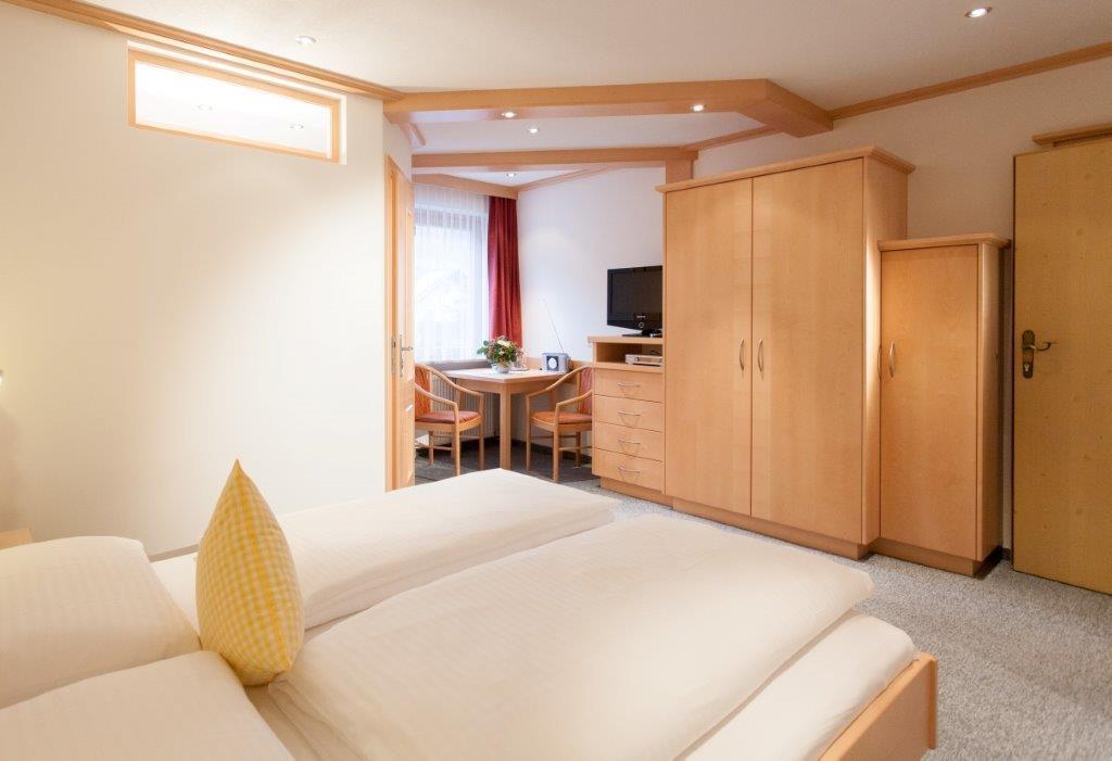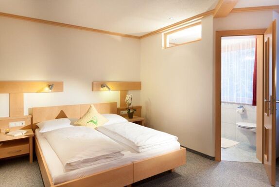 Gemütlich eingerichtetes Doppelbettzimmer mit Dusche/WC.