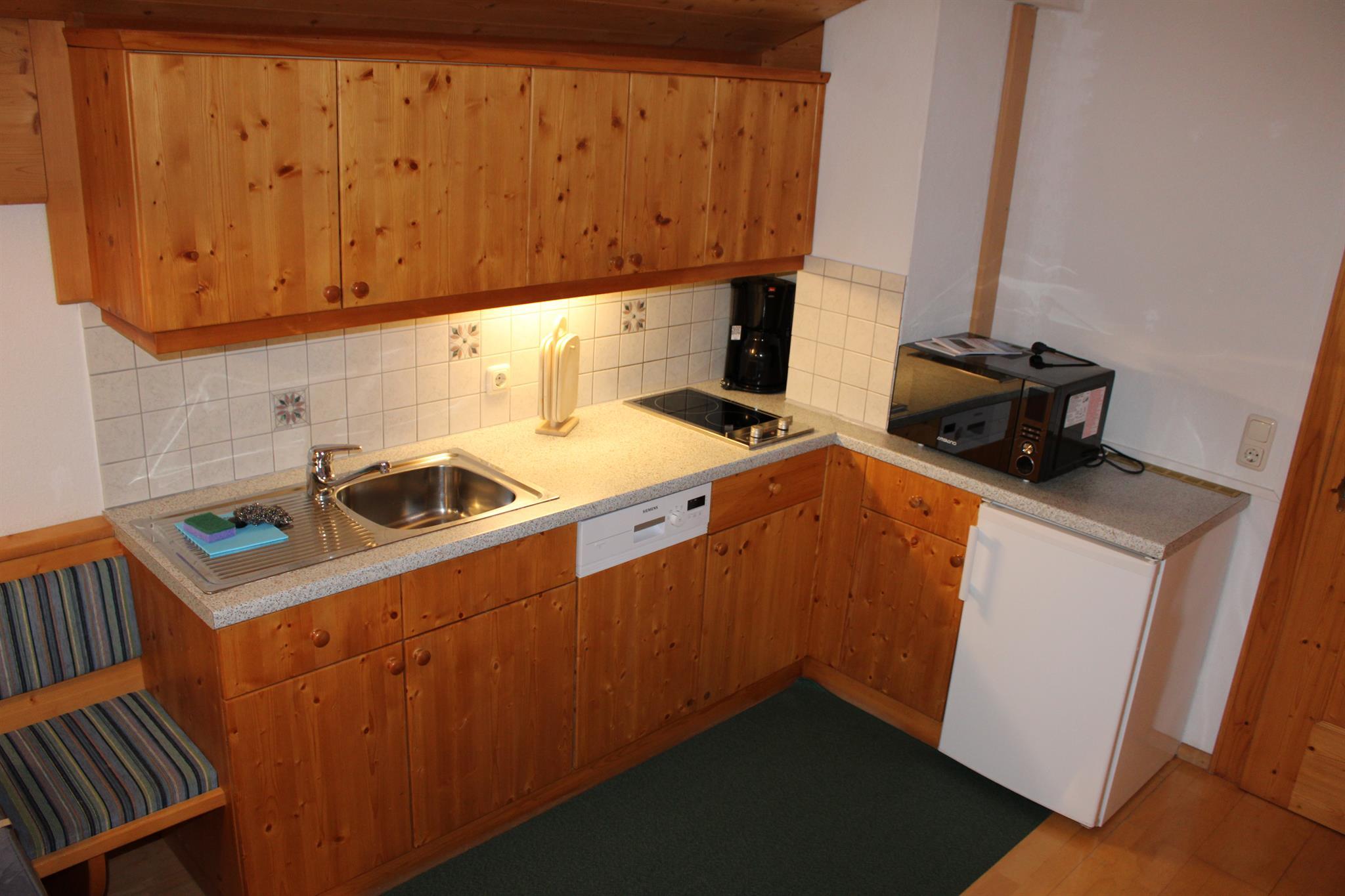 Liebevoll mit viel Holz ausgebaute Ferienwohnung im Dachgeschoss mit Wohnküche und zwei Schlafzimmern. Herrliche Aussicht zu den Karnischen Alpen vom Südbalkon.