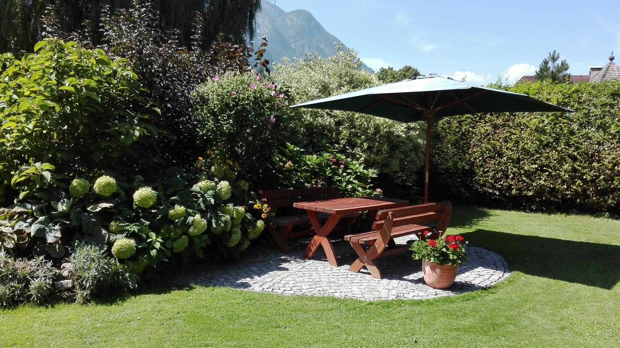 Verweilen Sie unter unserem 100 Jahre alten Nussbaum und entspannen Sie sich in unserem schönen Garten.
