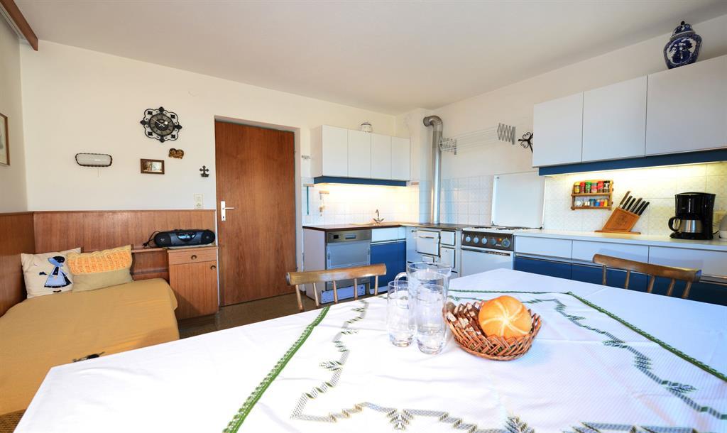 Helle, familiäre Wohnung mit geräumiger und gut ausgestatteter Wohnküche mit Geschirrspülmaschine in ruhiger Lage, Terrasse und Balkone mit schöner Aussicht.
