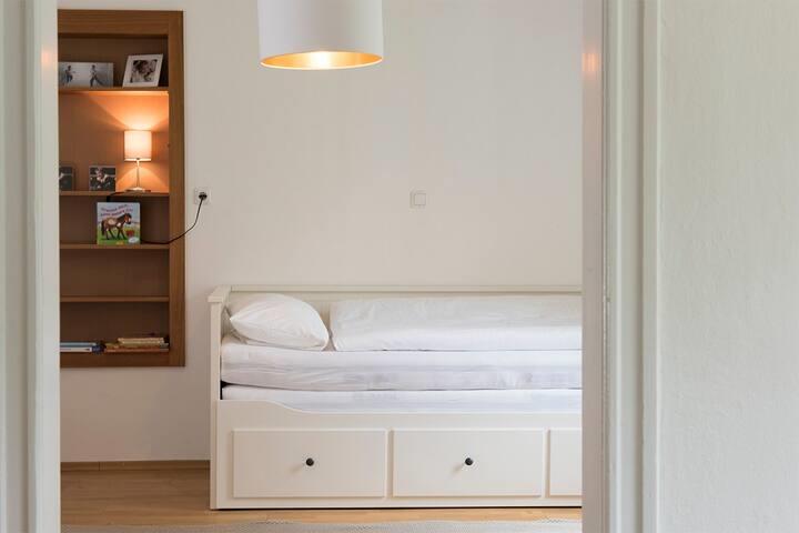 Im Erdgeschoss befindet sich neben einer voll ausgestatteten Küche, ein komfortables Wohnzimmer mit TV und Kachelofen. Im ersten Stock sind 3 Schlafzimmer und ein Klavierzimmer. Das Bad verfügt über eine Dusche und eine Badewanne, was nach einem langen Wandertag, oder einer Skitour besonders wohltuend ist. Daneben sind 2 Gästetoiletten und eine Wasch-Trockenmaschine. Alle Betten sind mit frischer, weißer Hotelbettwäsche ausgestattet. Bücher und zahlreiche Spielsachen für die Kleinsten, stehen vor Ort zur Verfügung.