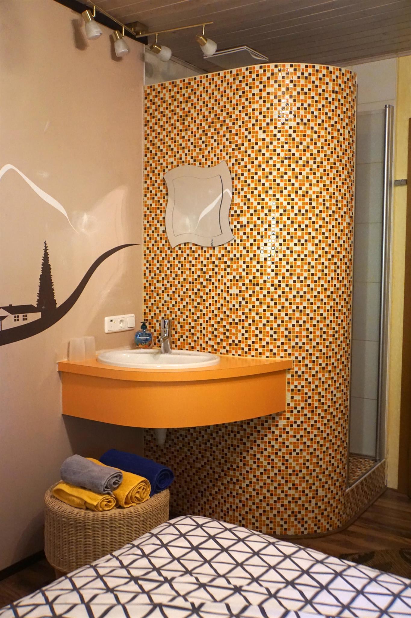 · Schlafzimmer 2: mit Doppelbett, Sessel, Kleiderschrank, eigene Dusche + Waschbecken