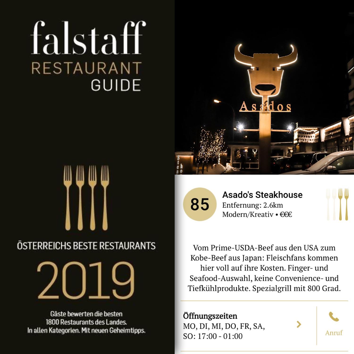 Unser Asado's Steakhouse im alpinen Retro-Chic-Style, wurde ausgezeichnet als bestes Steakhouse von Tirol / TOP 10 von Österreich.