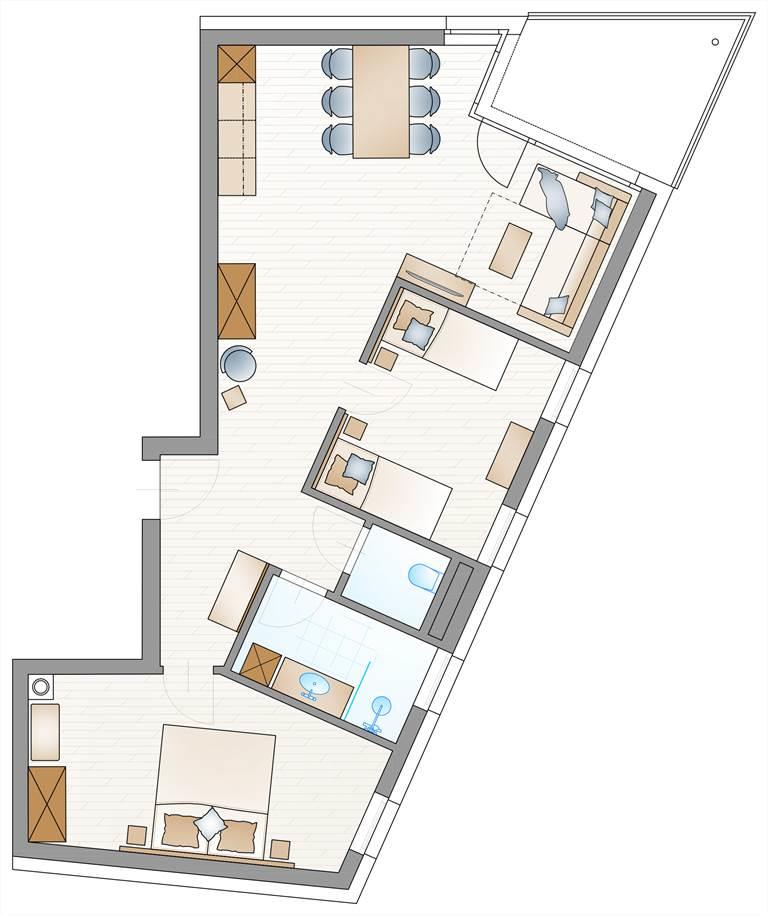 Apartment mit 65m2 für 4-6 Personen mit überdachtem Eckbalkon