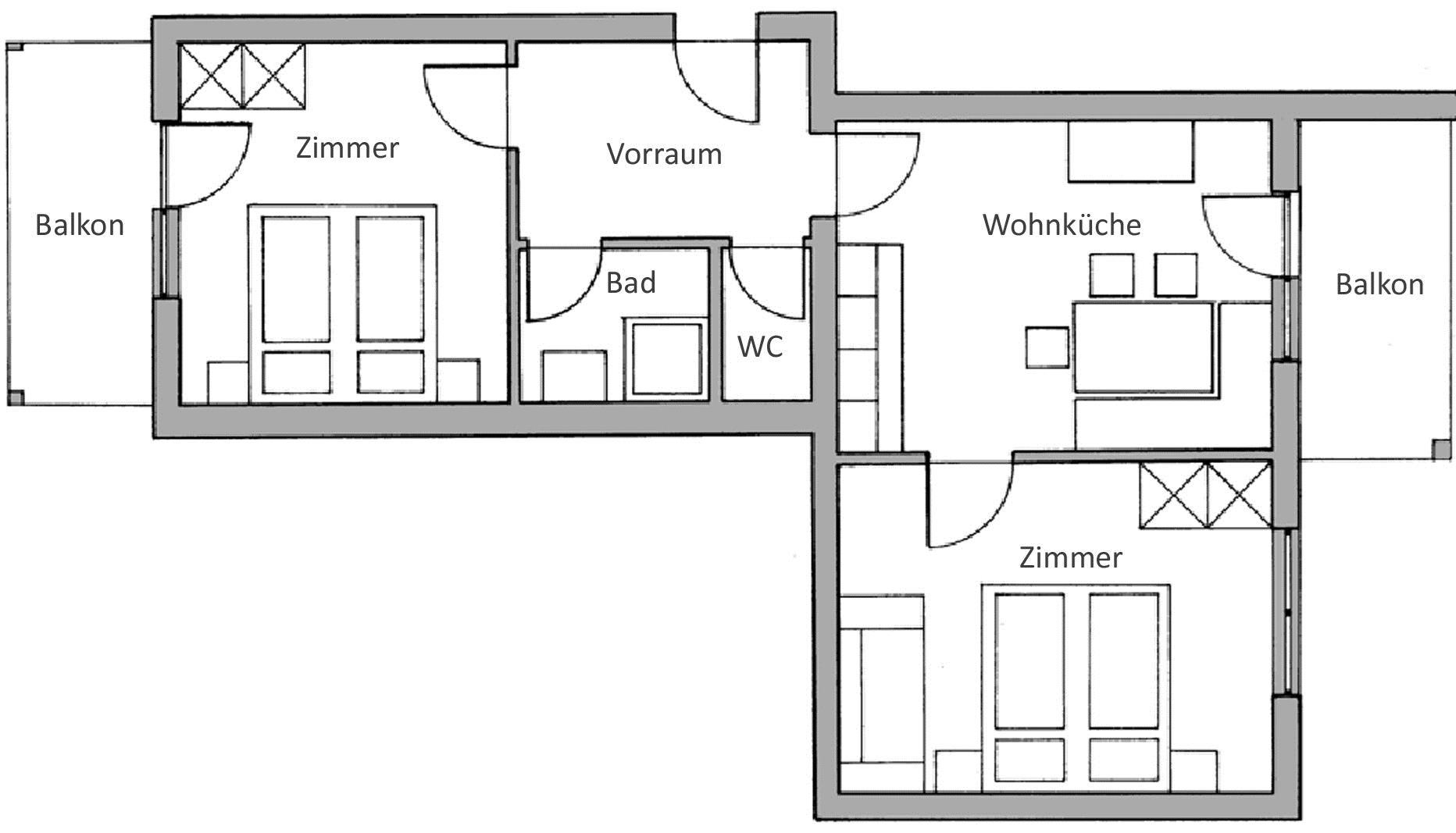 Vorraum mit Garderobe, Wohnküche mit Eßecke, E-Herd, Backrohr, Mikrowelle, Toaster, Kaffee-Filterautomat, Nespresso-Kapselkaffeeautomat, elektr. Teekocher, Geschirrspüler; Sat-TV, Radio, Telefon, Safe. Zwei getrennte Schlafzimmer, Dusch-/Waschraum, separates WC, Zentralheizung, 2 Balkone. Bettwäsche, Hand- und Geschirrtücher werden beigestellt. Handtücherwechsel zweimal wöchentlich. Koch- und Eßgeschirr ausreichend vorhanden. Unsere hauseigene Sauna ist einmal pro Aufenthalt gratis. Gratisstrand am Faaker See, 1500 m vom Haus. Babybett und Hochstuhl vorhanden. Im Preis enthalten sind: Kurtaxe für 2 Erwachsene, Strom und Endreinigung! Semmel-/Brötchenservice gegen Aufpreis.