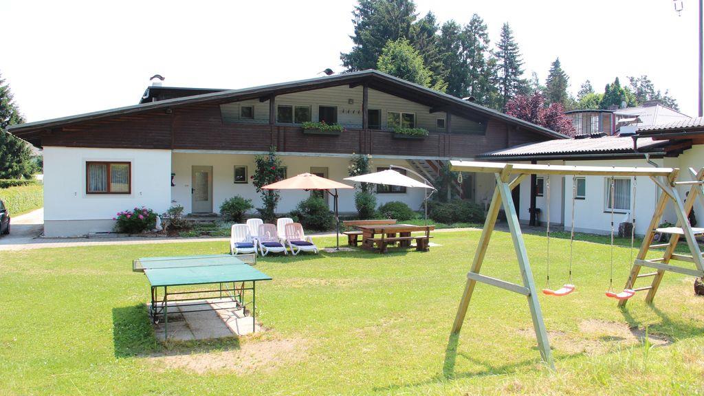 Unser Haus liegt am Waldrand auf einem 3000 m2 großem Grundstück in der Berg- und Seeregion Villach-Landskron, Ossiacher See. Ruhige sonnige Lage. Geschützter Innenhof als allgemeiner Spiel- und Partyplatz mit Gartengrill und Sitzmöglichkeiten. Große Liegewiese mit Liegen, Tischtennis, Volleyball. Sandspielplatz mit Schaukel und Rutsche für kleinere Gäste. Inklusive: Fahrräder nach Verfügbarkeit, auch Kinderräder bzw. Kindersitze. Eintritt am Ossiacher See ins Gerlitzenstrandbad mit Umkleidekabinen. Zum Ossiacher See ca. 2 km, mit dem Rad in 15 Min. erreichbar. Villach ca. 7 km-Einkaufsmöglichkeiten in nächster Umgebung (auch sonntags). Sportzentrum Annenheim ca. 1,5 km (Tennis, Reiten, Segeln, Paragleiten, Bootsverleih uvm.) Nebenkosten: Strom nach Verbrauch ( € 0,26/kWh); Kurtaxe für EW; und Endreinigung (€uro 32)