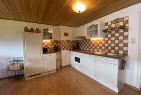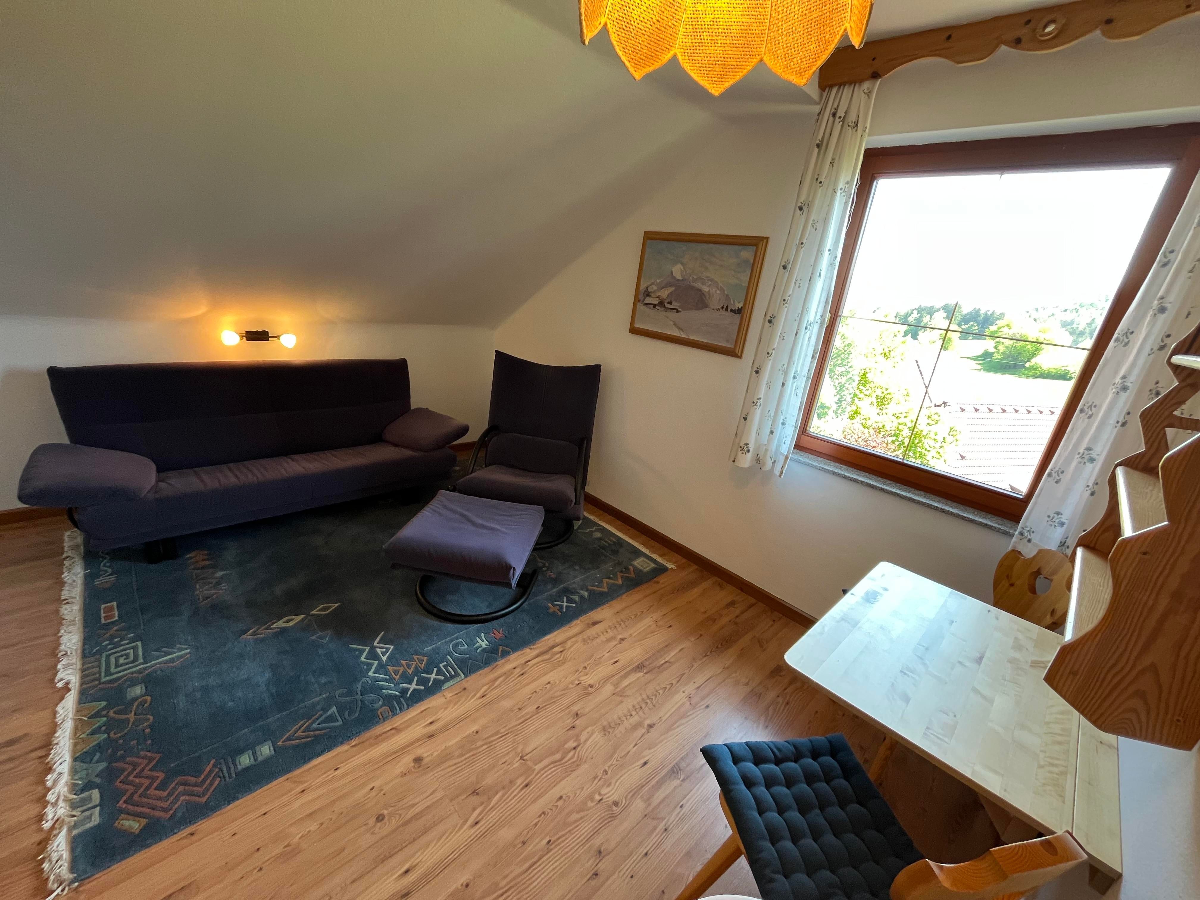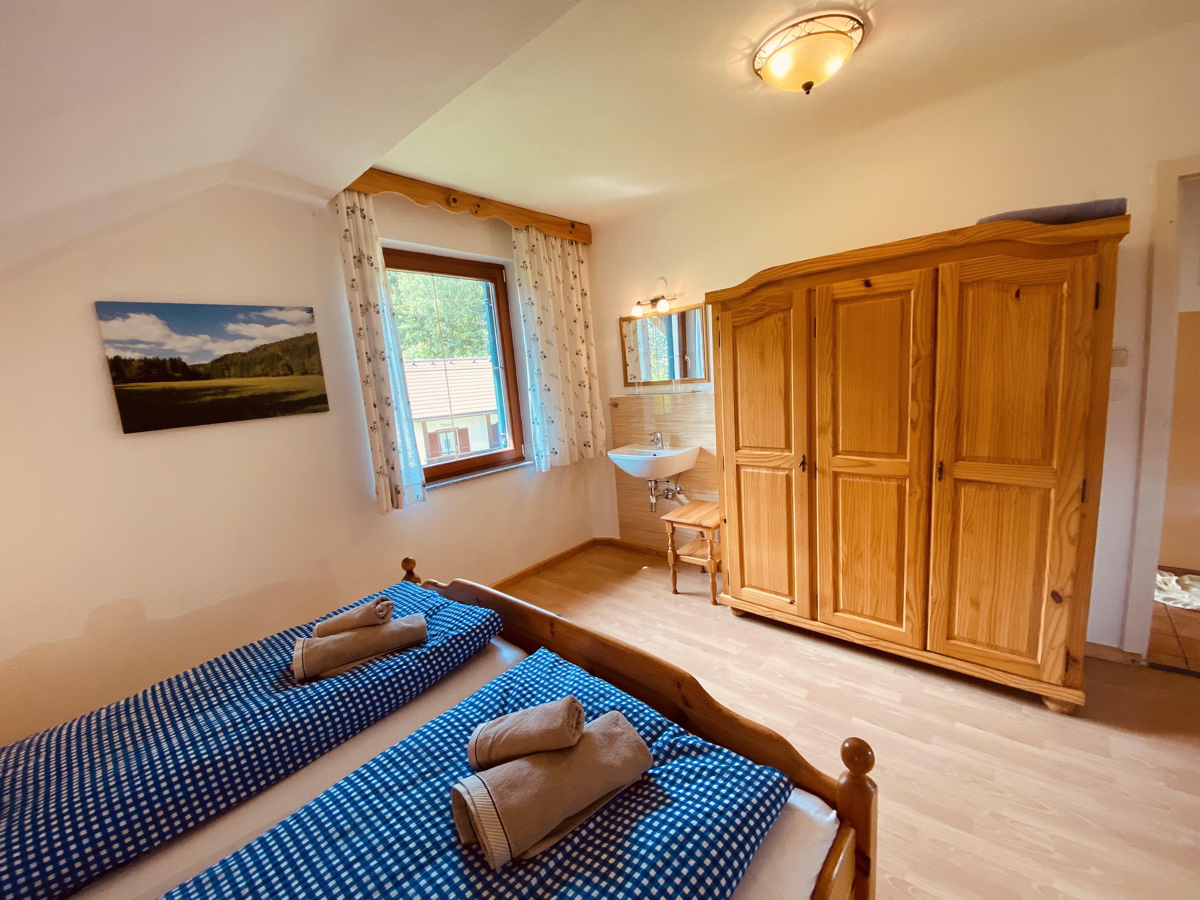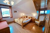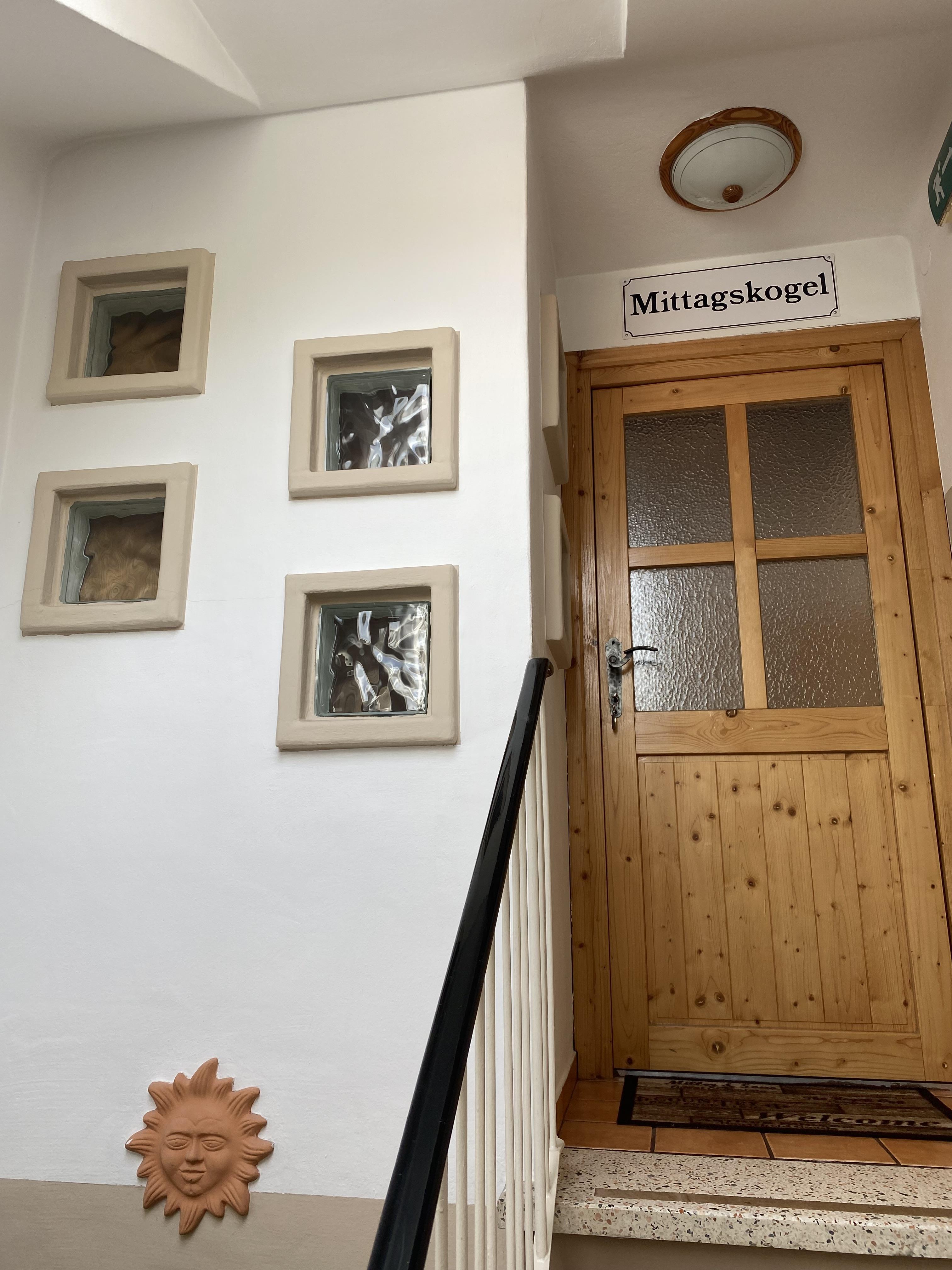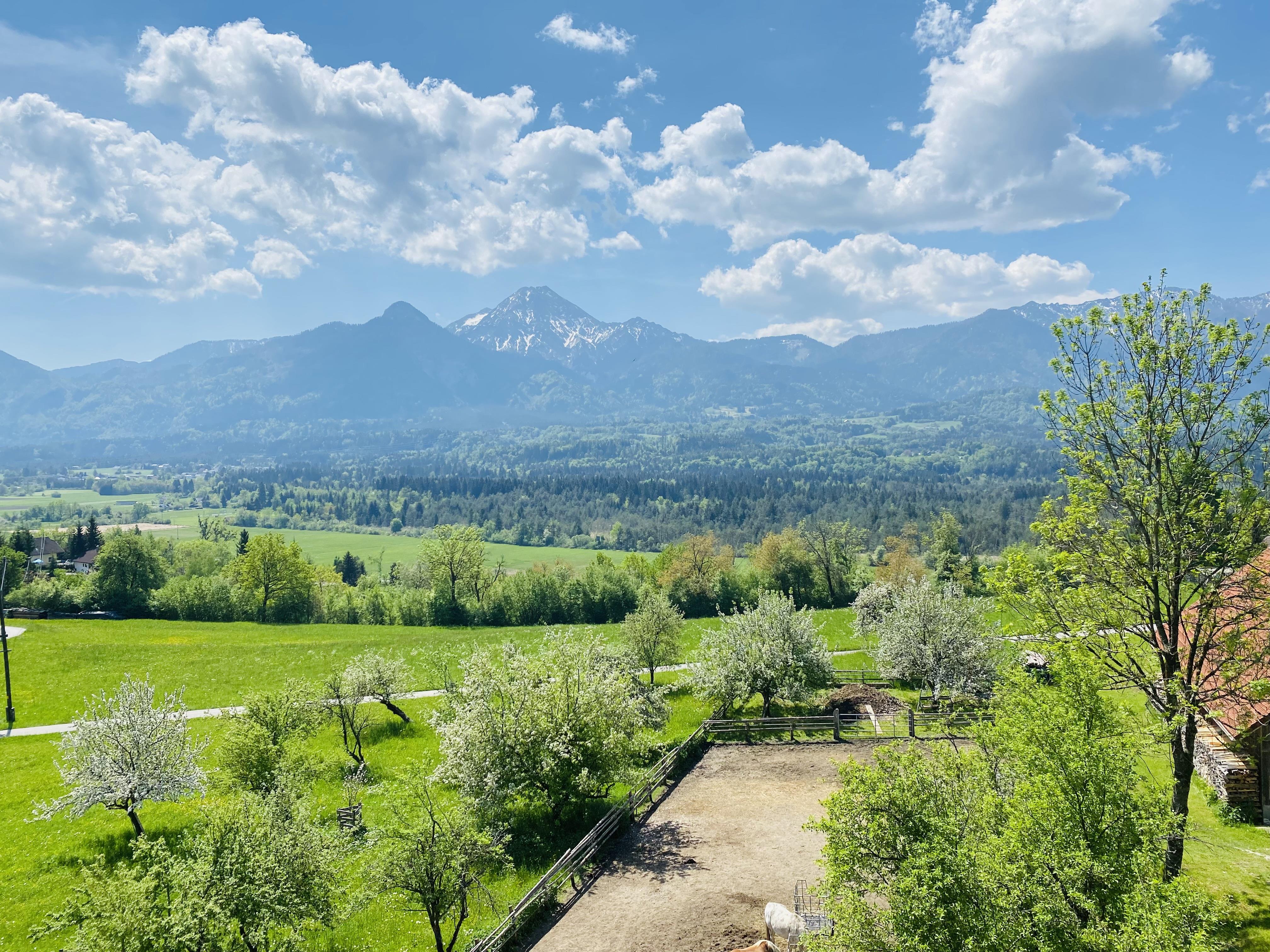 Unsere Ferienwohnung Mittagskogel erstreckt sich über das gesamte Dachgeschoss unseres Haupthauses im 3. Stock und bietet auf 100m2 großzügigen Raum für 1 oder 2 Familien (variable Preise, angegebene Preise bis zu 5 P/2 EW u. 3 Kinder), bis zu 6 Personen. 3 Schlafzimmern mit Doppelbetten und alle mit eigenem Waschbecken ausgestattet, eine Dusche, WC und eine große Wohnküche mit Geschirrspüler, Backofen, Kaffeemaschine und Toaster ausgestattet, erwarten Sie. Ein Kaminofen verwöhnt an kühlen Tagen mit wohliger Wärme.