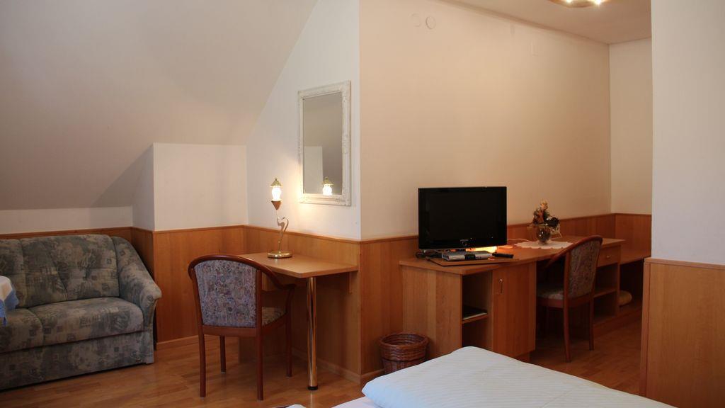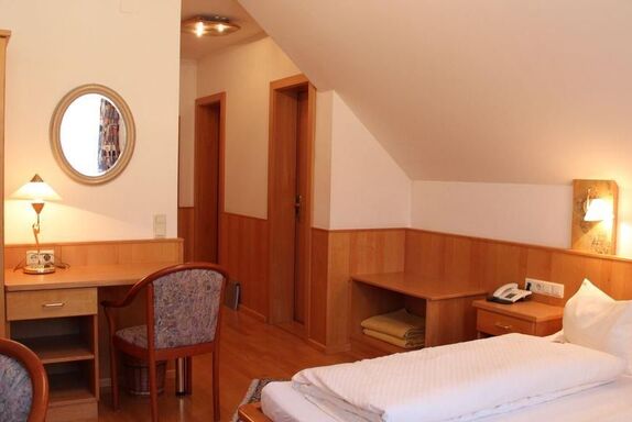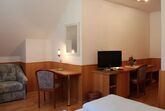 Geräumiges, helles Zimmer, mit Holzparkettboden ausgestattet mit Sat-TV, Telefon, Radio, Safe und noch vielen anderen Annehmlichkeiten.