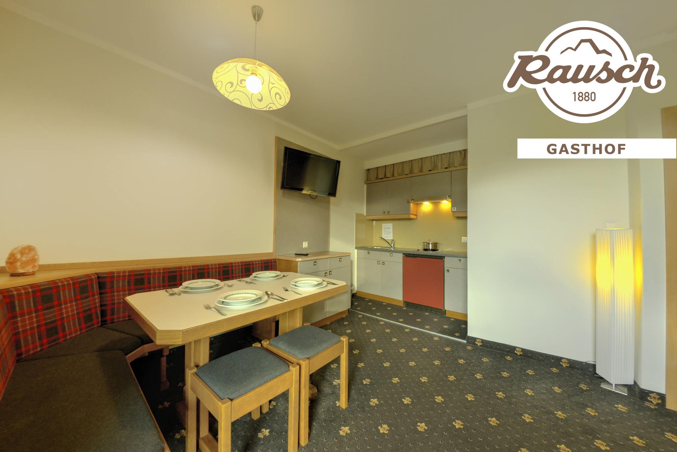 Unsere Ferienwohnung G verfügt über 2 separate Doppelzimmer mit Balkon, 1 Wohnschlafraum mit 2 Ausziehcouchen, eine Kochnische, Essecke, Safe, Sat-TV mit Radio, Vorraum, Badezimmer mit Dusche - WC und Fön. Am Balkon steht auch eine Sitzgelegenheit zur Verfügung. Alle Mahlzeiten werden im Gasthof eingenommen. Am Balkon steht auch eine Sitzgelegenheit zur Verfügung. Alle Mahlzeiten werden im Gasthof eingenommen.