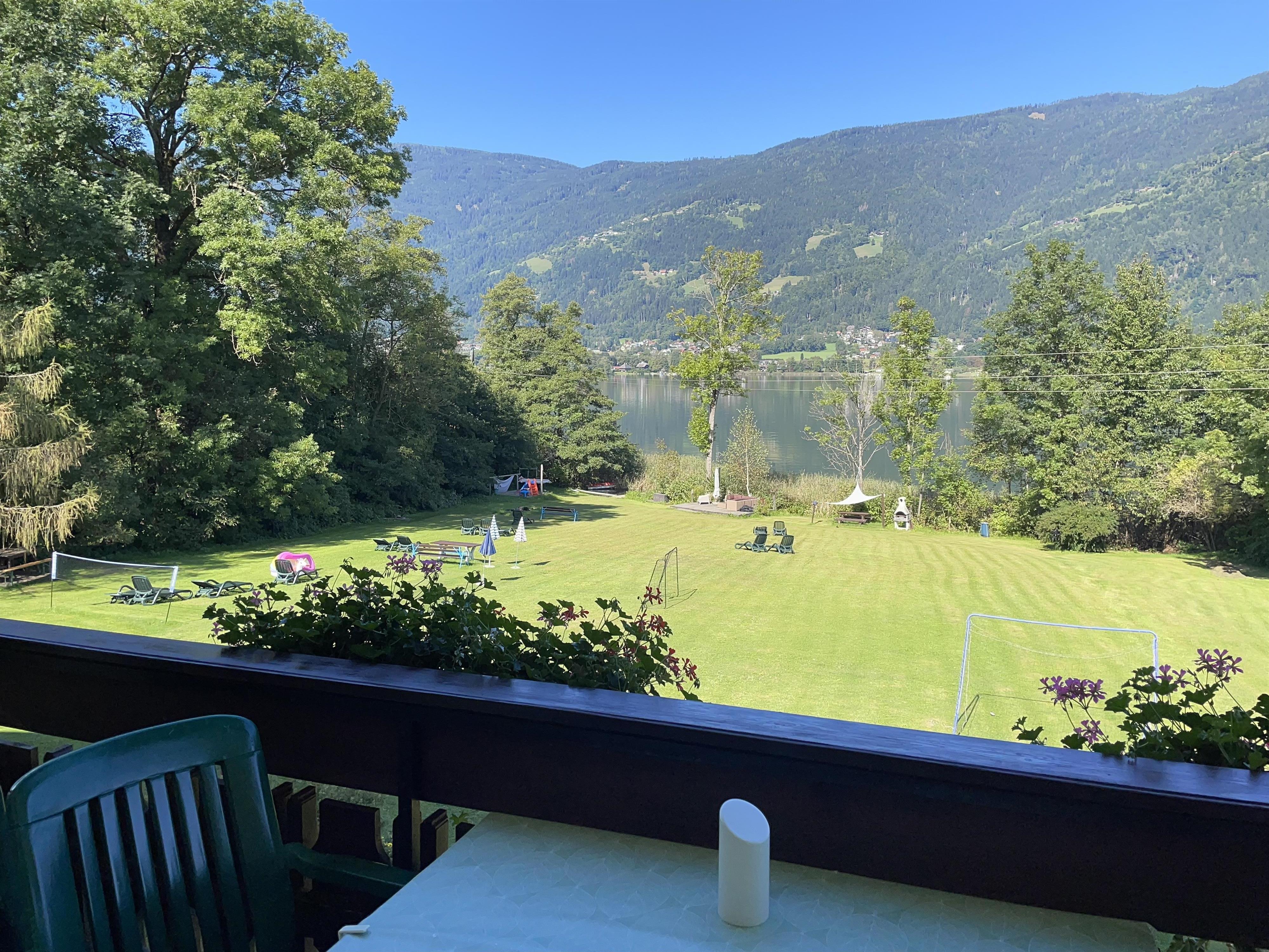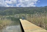 Vom Appartement wenige Schritte und unser eigener Badestrand mit kinderfreundlich verlaufendem Seeufer und Badesteg lädt zum Sprung ins kühle Nass.