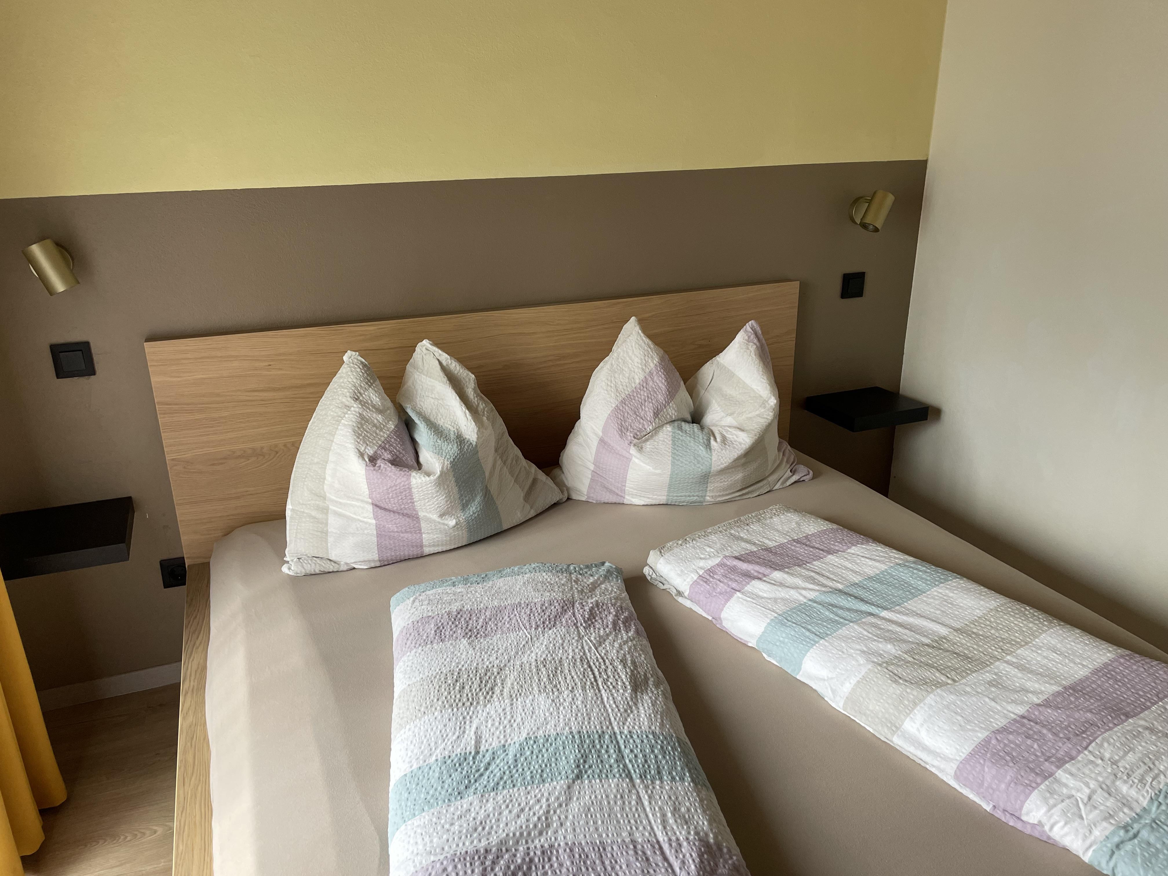 4 FeWo mit Wohnzimmer, zwei Schlafzimmern, komplett eingerichteter Küche, Dusche, WC, seeseitiger Terrasse bzw. Balkon. 2 FeWo mit Wohn-/Schlafraum, Schlafzimmer, Wohnküche, Dusche/WC, Balkon mit herrlichem Seeblick!