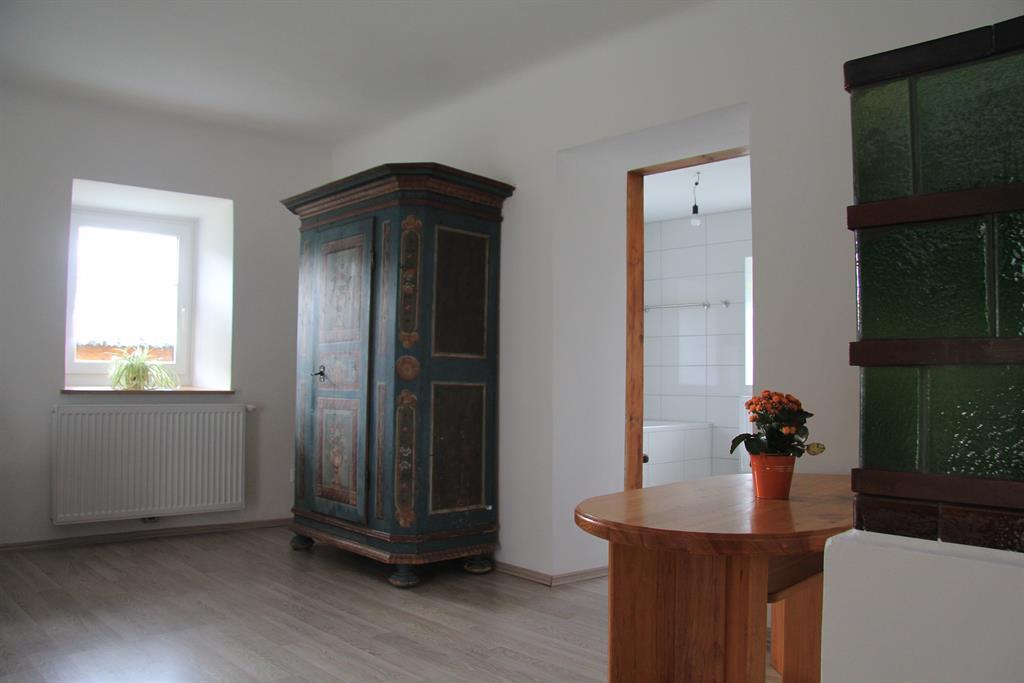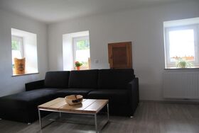 Nach Renovierung des Erdgeschosses in 2017 bietet Ihnen dieses nun auch eine geräumige und exklusive Ferienwohnung auf ca. 70qm. Die Wohnung besteht aus einem Schlafzimmer mit einer Gewölbedecke, einer voll ausgestatteten Küche inklusive Backofen und Spülmaschine, einem Essbereich sowie einem Wohnzimmer mit Zugang zur Terrasse, die zu Ihrer exklusiven Nutzung zur Verfügung steht. Das Badezimmer verfügt sowohl über ein Dusche als auch eine separate Badewanne. In der Couch im Wohnzimmer befindet sich eine Rollmatratze mit einer Liegefläche von 140 X 200, so dass die Wohnung auch für max. 4 Personen geeignet ist. Die Terasse bietet Ihnen aufgrund der Südausrichtung von den frühen Morgenstunden bis in den Abend die Möglichkeit die Sonne zu genießen. Hier können sie am Morgen in der Sonne frühstücken und ebenso den Sonnenuntergang genießen. Der auf den Bildern ersichtliche Kachelofen ist leider nicht mehr zu beheizen.