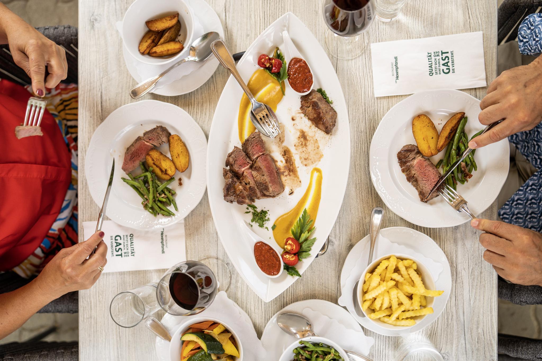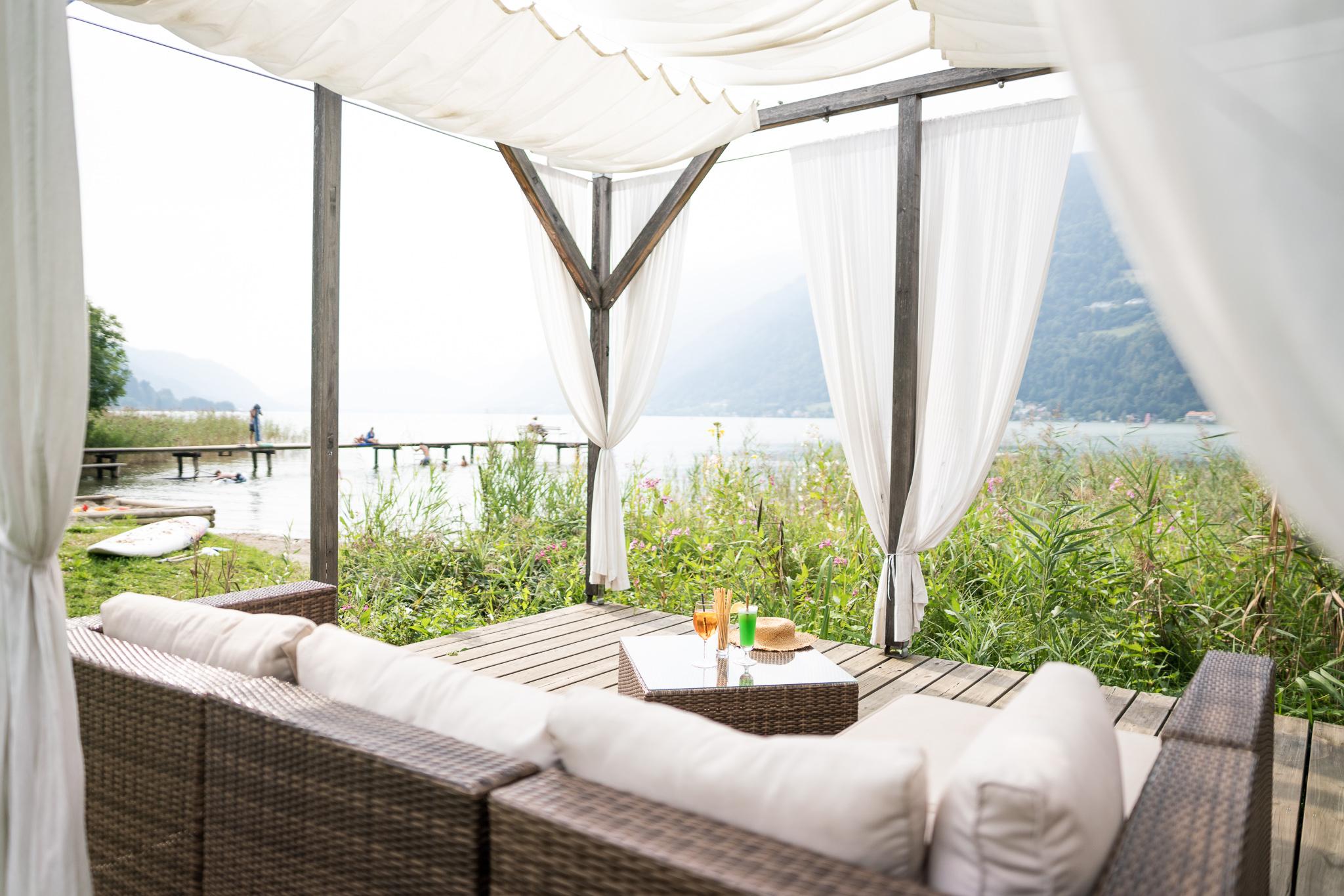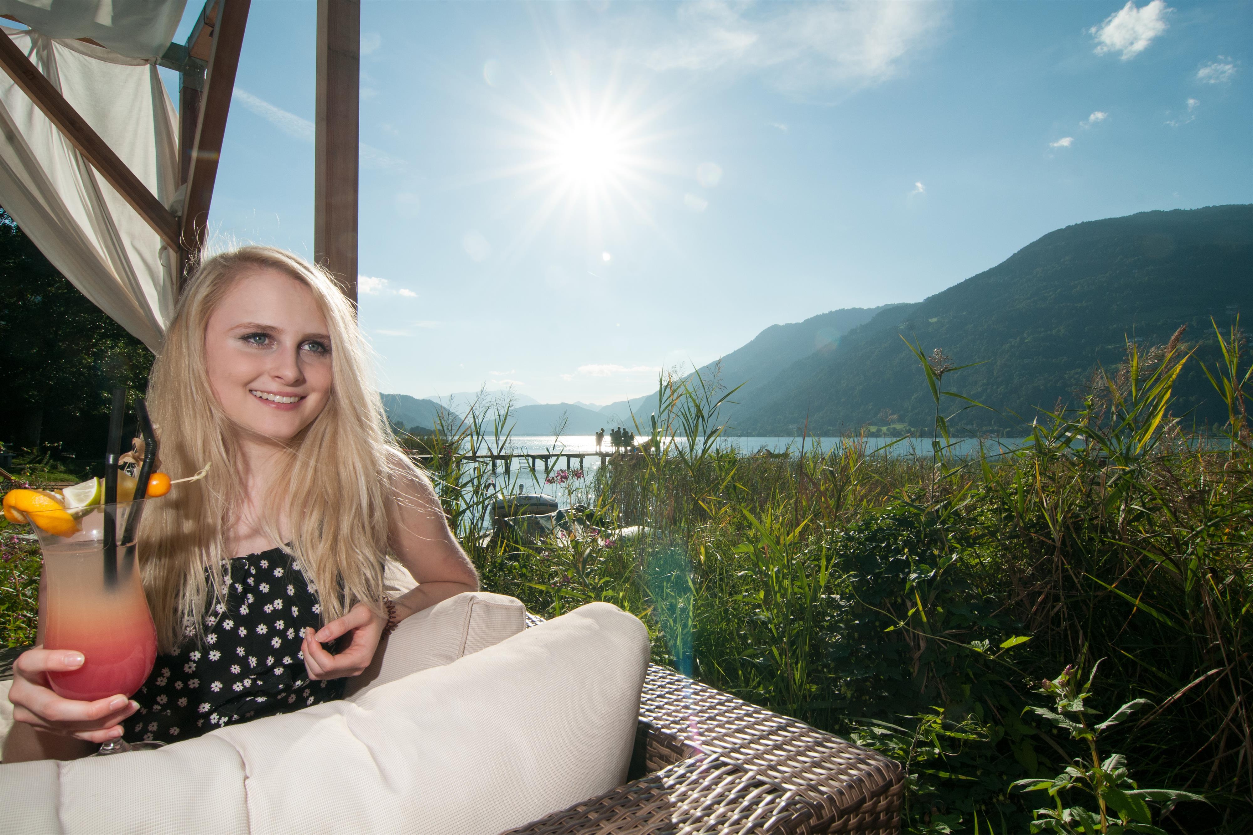 Hier, am Südufer des Ossiacher Sees, lassen sich die schönsten Sonnenuntergänge Kärntens beobachten. Das sagen zumindest die Gäste der Familie Parth, die ihren Urlaub immer wieder gerne hier verbringen. Nur gut, dass man diese einzigartige Lichtstimmung von fast jedem Standort aus genießen kann. Denn bei einer solchen Aussicht schmecken die in der Seelounge gemixten Cocktails gleich doppelt so gut. Ihren frischen Geschmack verdanken die hausgemachten „Sundowner“ übrigens den regionalen Zutaten, die bei Familie Parth auch in der Küche die Hauptrolle spielen. So finden sich auf der abwechslungsreichen Speisekarte besonders viele heimische Produkte, wie das südkärntner Alm-Lamm oder die typische Kärntner „Lax´n“. Ein Fisch, der in der Region besonders gern gegessen wird.