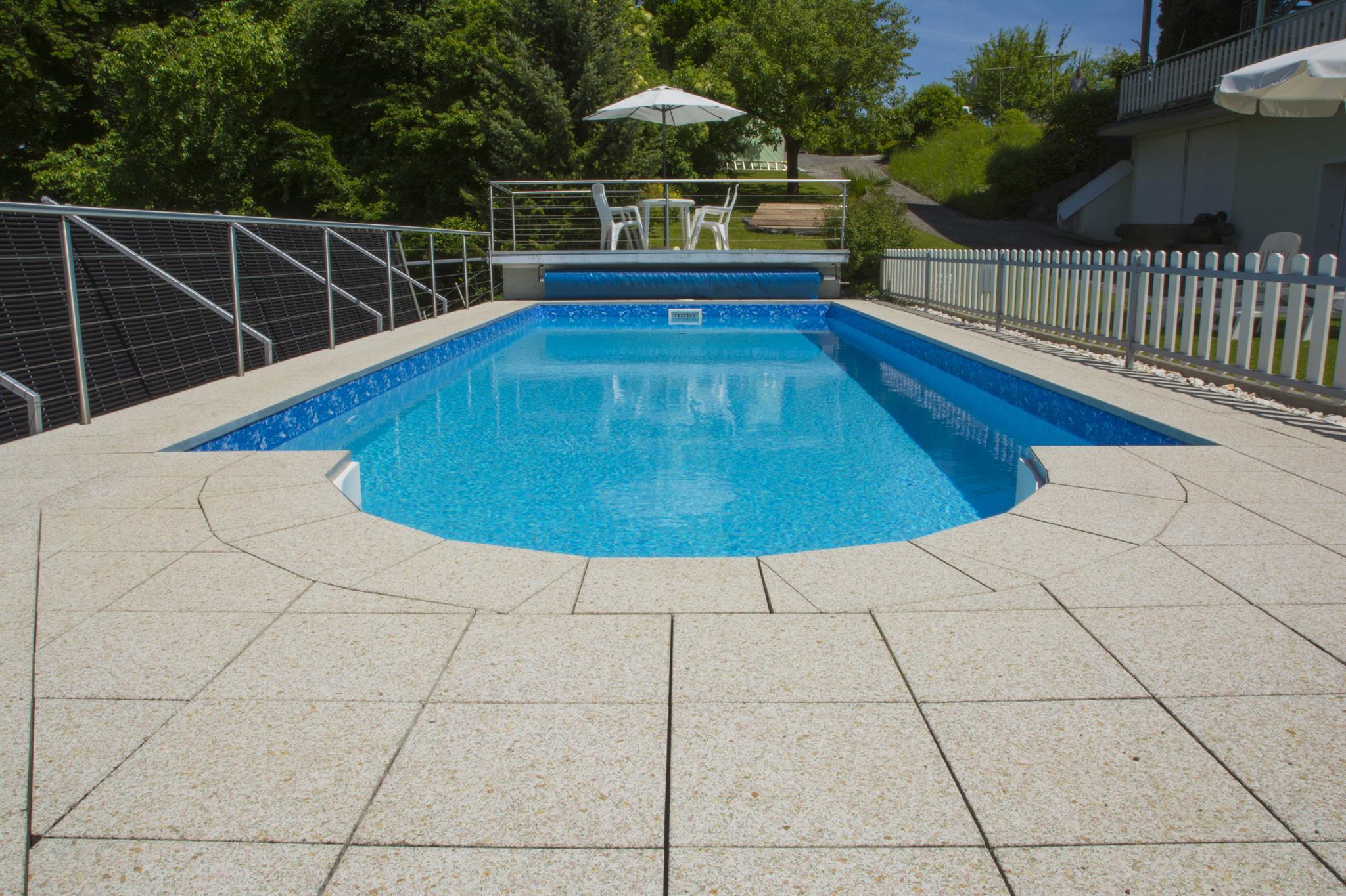 Auf ca. 5.000 m2 Grund um das Haus befinden sich Liegewiese, Spielplatz, Lamakoppel, und solarbeheizter Pool.