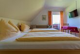 Alle Zimmer mit Dusche und WC, Sat-TV, Heizung und Balkon. Gemeinschaftskühlschrank, geräumiger Aufenthaltsraum, Sitzgarten und Spielwiese. Parkplätze beim Haus.