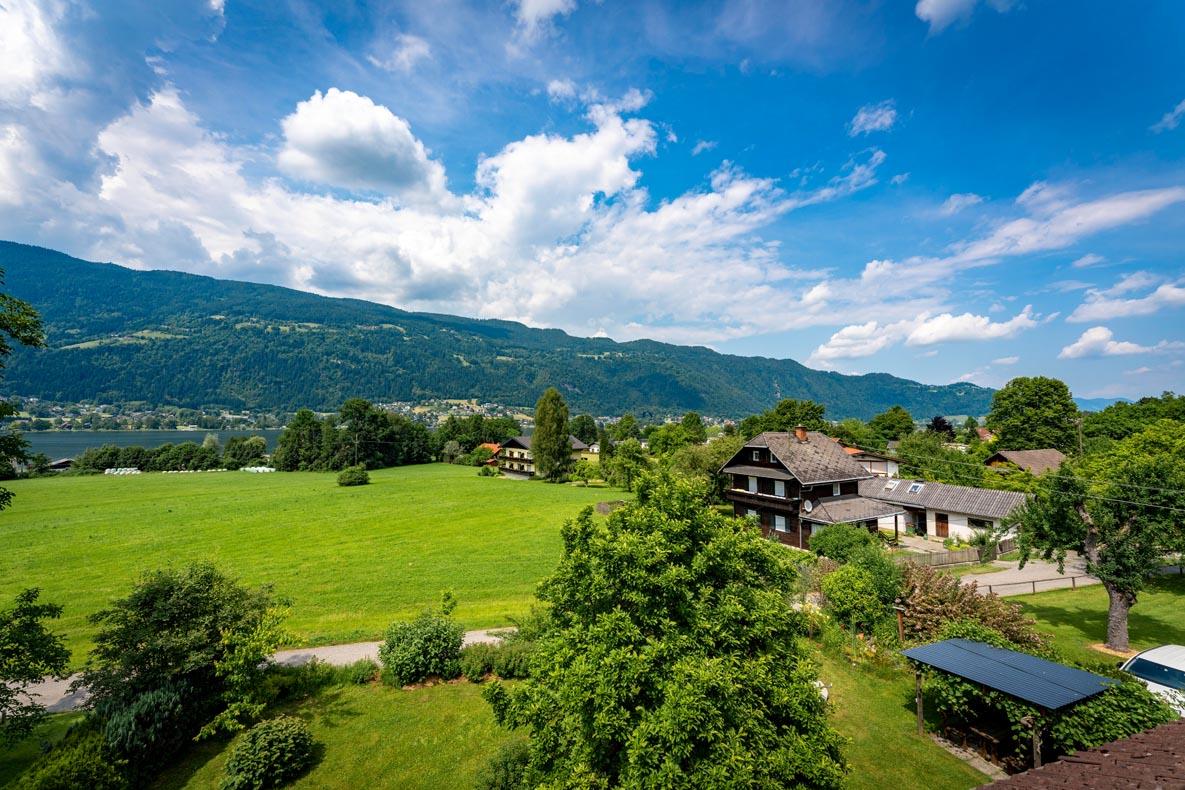 Absolut ruhig gelegenes Haus mit freiem Blick auf den See und die umliegenden Berge. Cirka 1 km vom Ortszentrum entfernt.