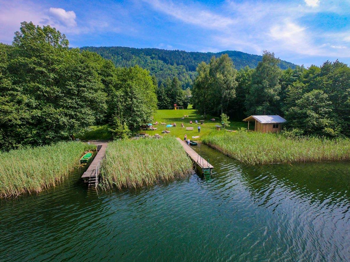 Zur freien Benützung: Volleyball, Grillmöglichkeit, Tischtennis, Kajak, Ruderboot, Liegen.