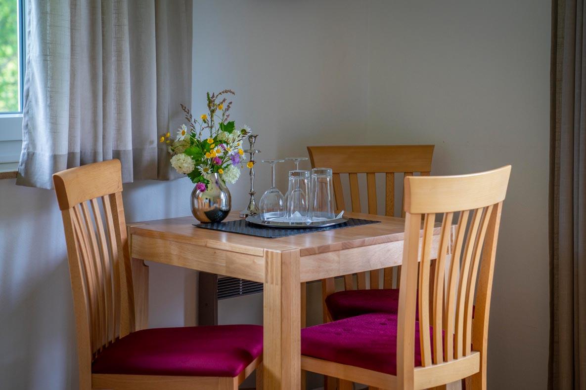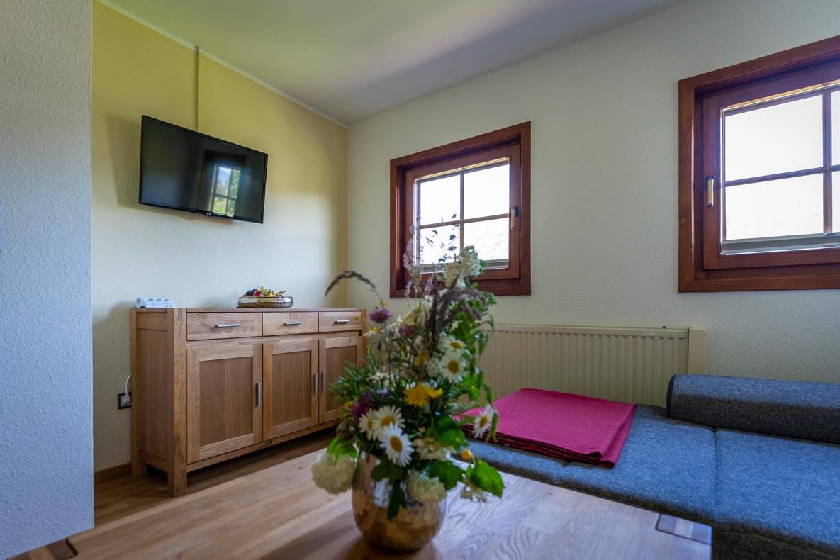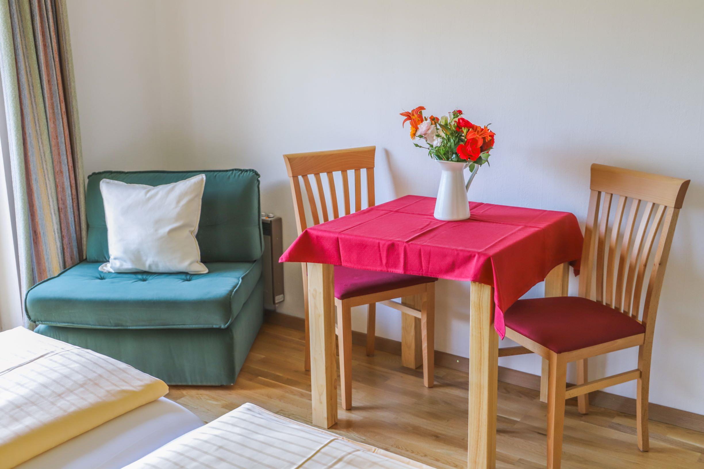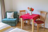 Alle Zimmer mit Dusche und WC, Sat-TV, Heizung und Balkon. Gemeinschaftskühlschrank, geräumiger Aufenthaltsraum, Sitzgarten und Spielwiese. Parkplätze beim Haus.