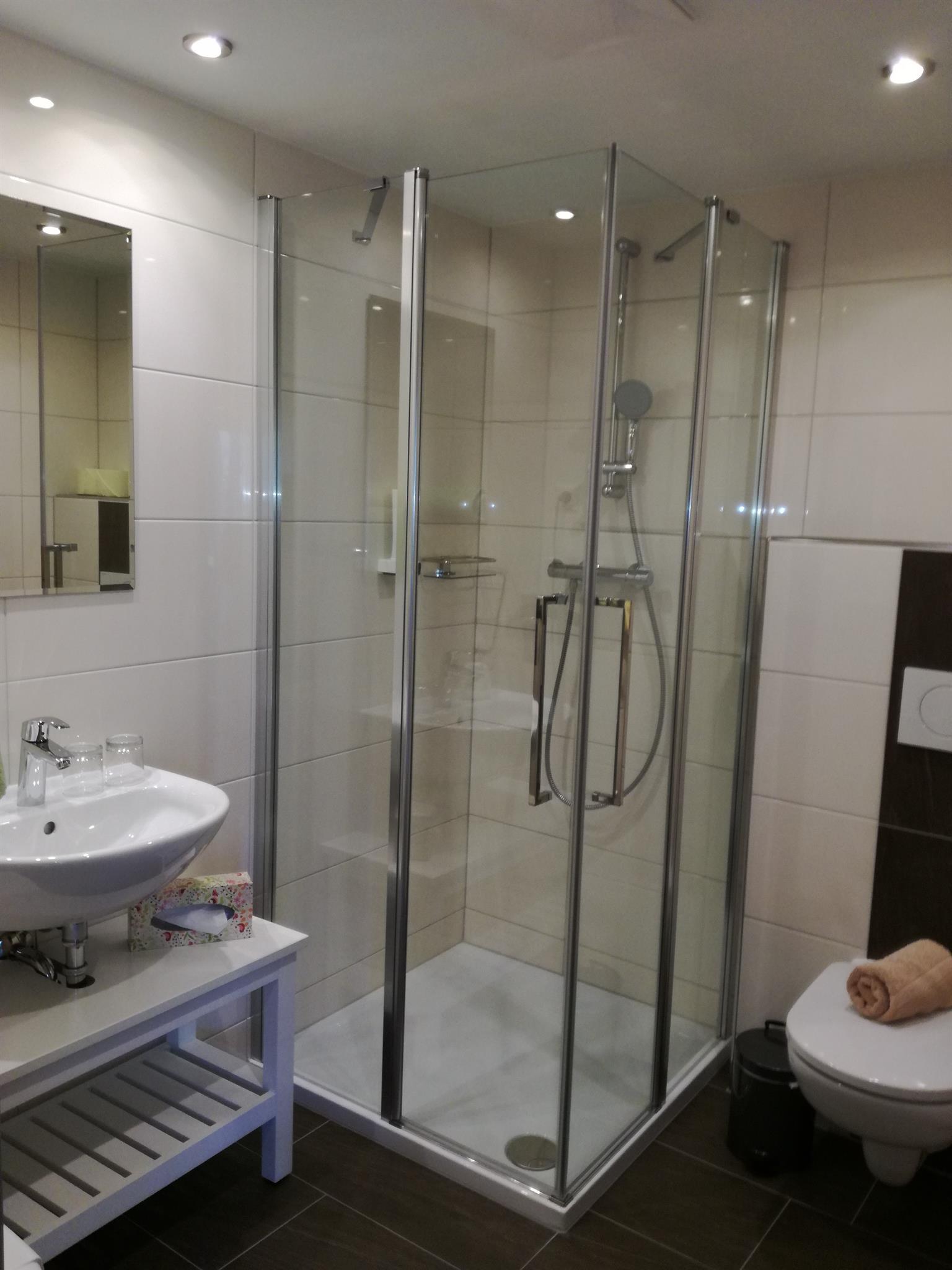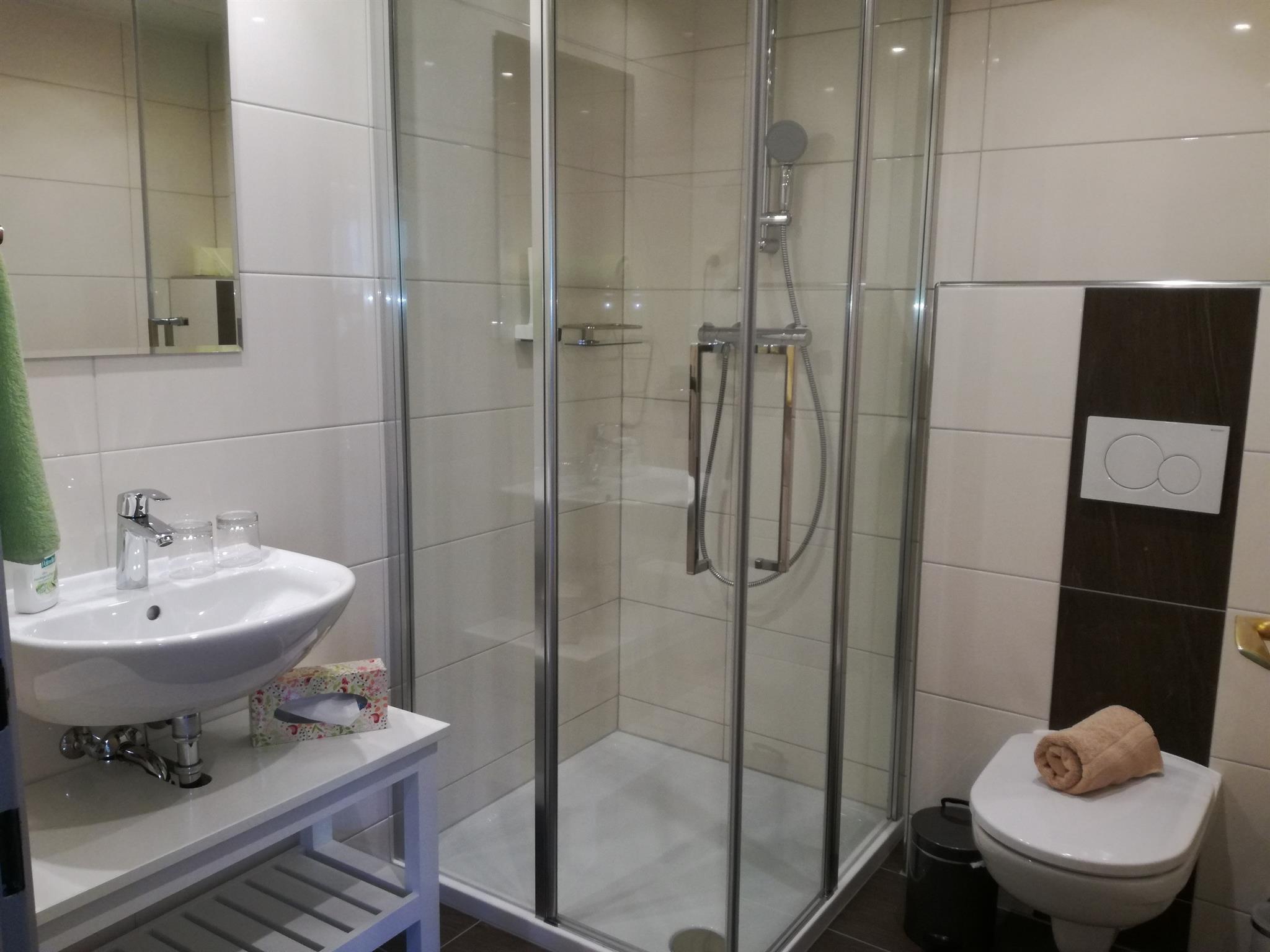 • neues Badezimmer mit Dusche und WC (Handtücher, Fön)