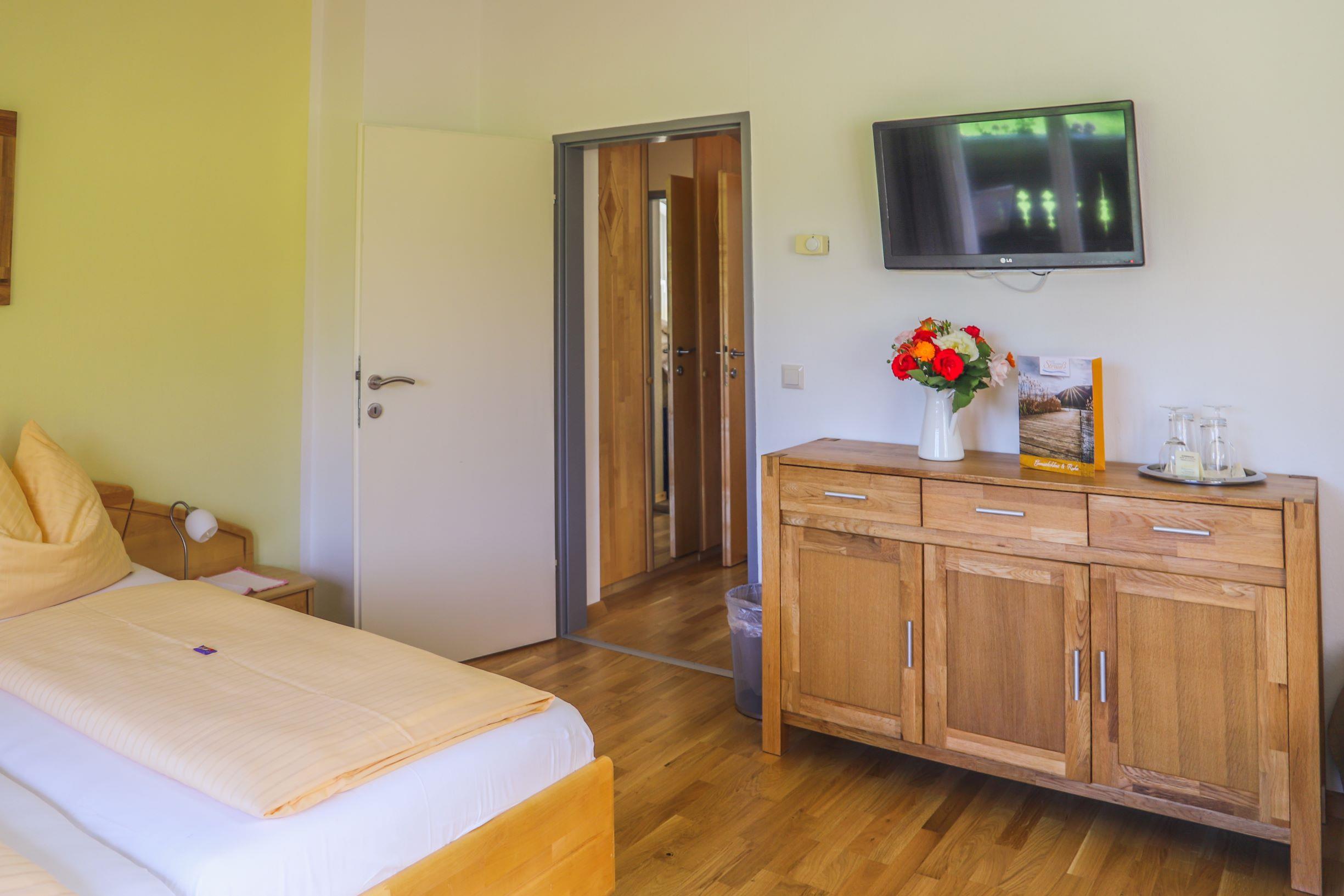 • Komfortzimmer mit Doppelbett, Flat-TV, WLAN bzw. Wifi, Tresor