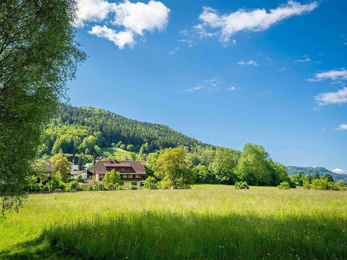 Absolut ruhig gelegenes Haus mit freiem Blick auf den See und die umliegenden Berge. Cirka 1 km vom Ortszentrum entfernt.