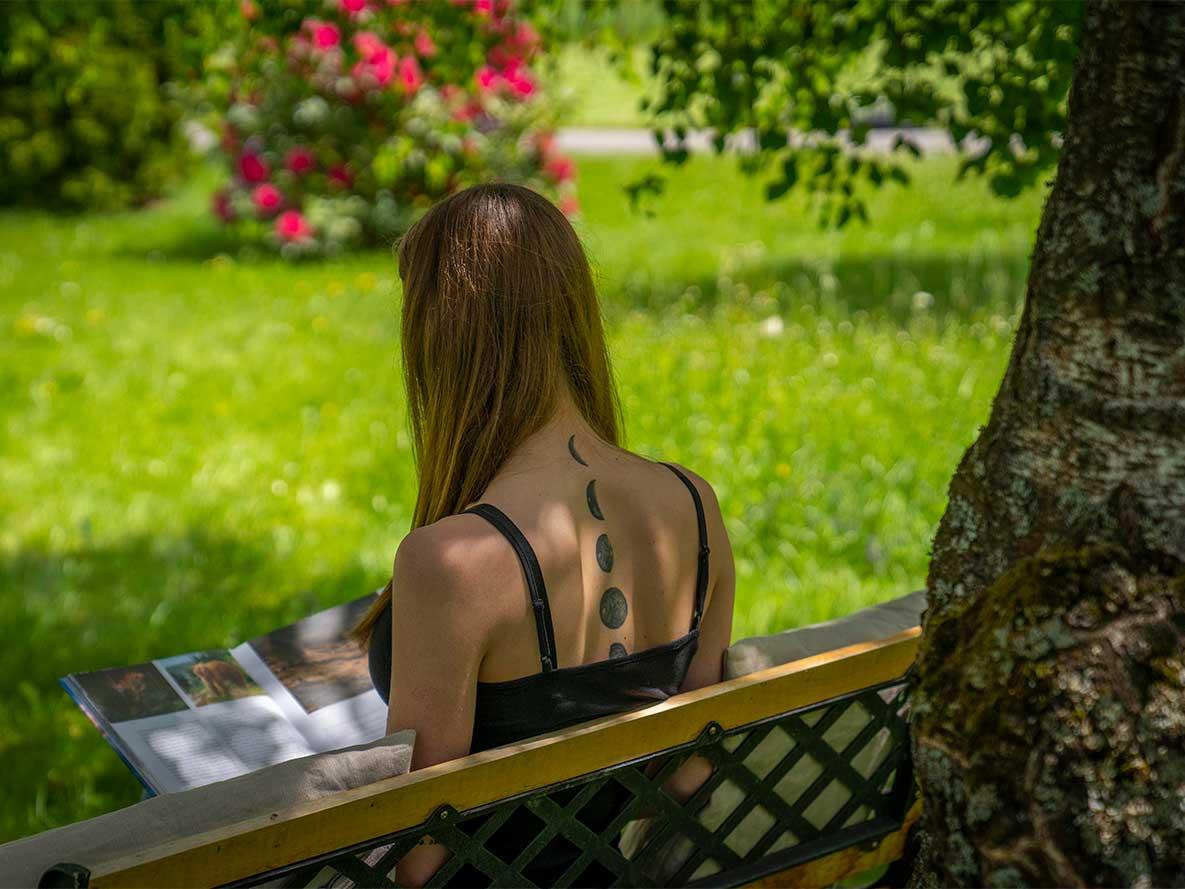 Ohne Querung einer Straße erreichen Sie den hauseigenen Badestrand mit großer Liegewiese (50m).