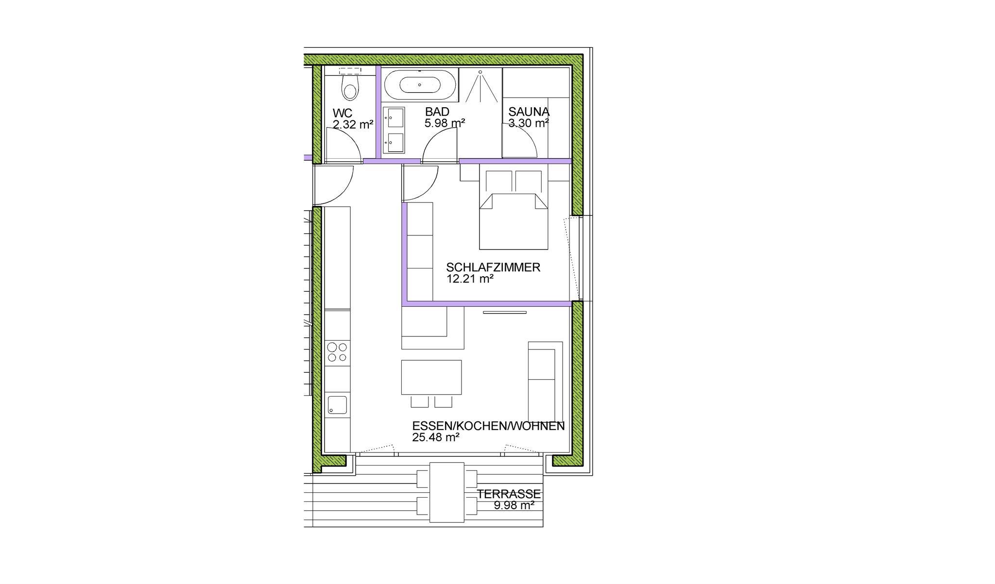 Wohlfühlappartement 55 m² (mit privater Sauna und Terrasse) bestehend aus 1 Schlafzimmer, gemütliches Wohnzimmer mit integrierter Küche, Badezimmer mit Dusche und Badewanne, separates WC, private Saunakabine mit finnischer Sauna und Sanarium, Sonnenterrasse; elegant und gemütlich eingerichtet, TV, Telefon, Gratis-Internet-Zugang, DVD- und Blueray Player, Brötchenservice, Service - täglich außer Mittwoch und Sonntag. Freuen Sie sich auf edle Stoffe, warme Holztöne und aussergewöhnliche Details. Unsere Appartements sind NICHTRAUCHER APPARTEMENTS! Wir danken für Ihr Verständnis.