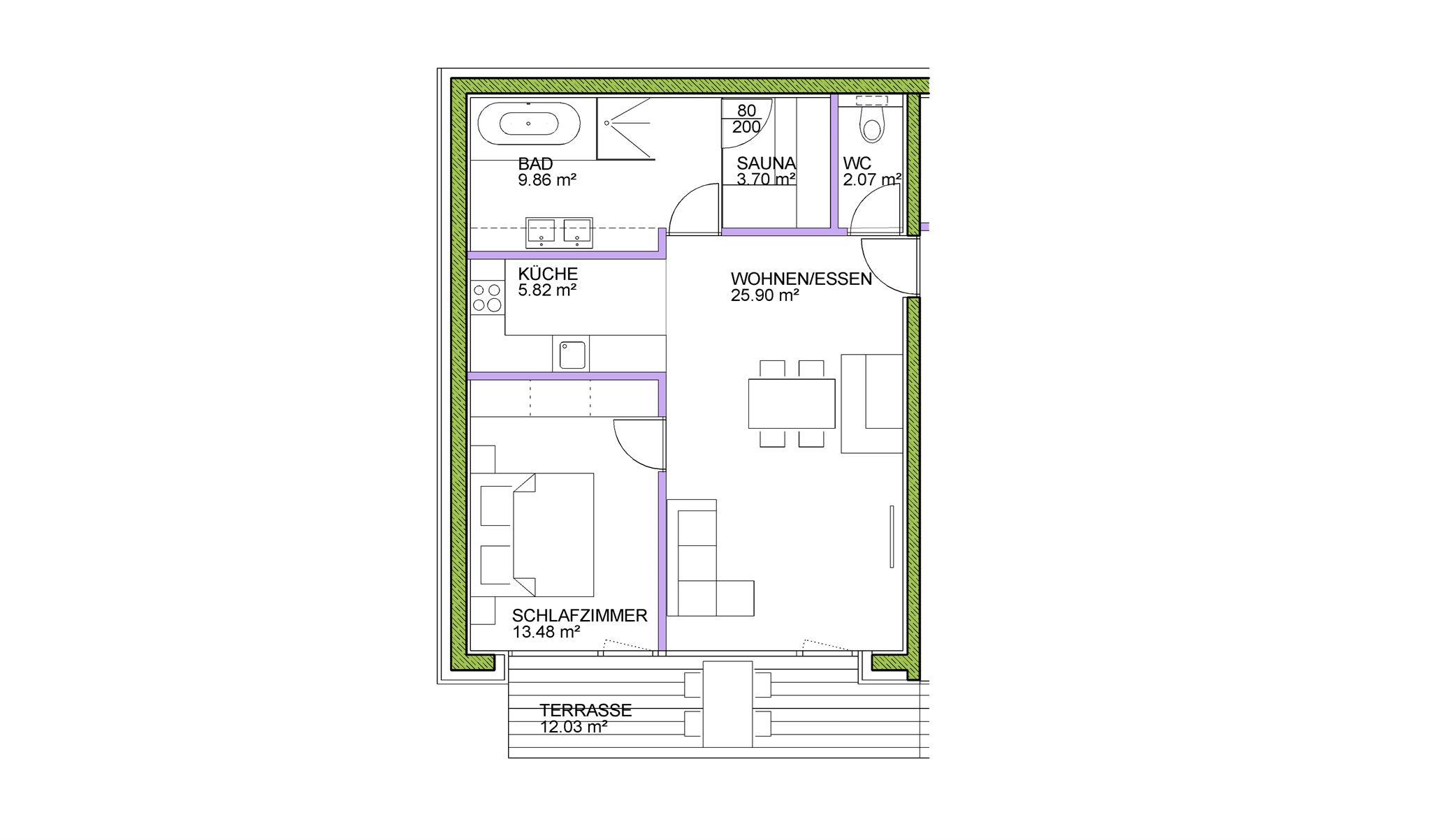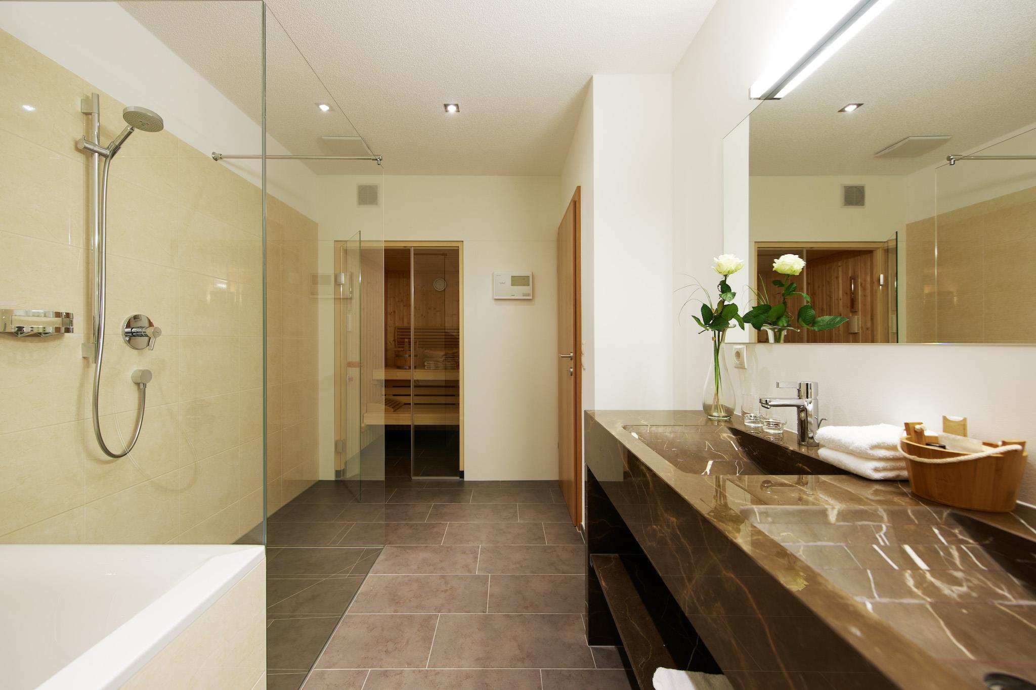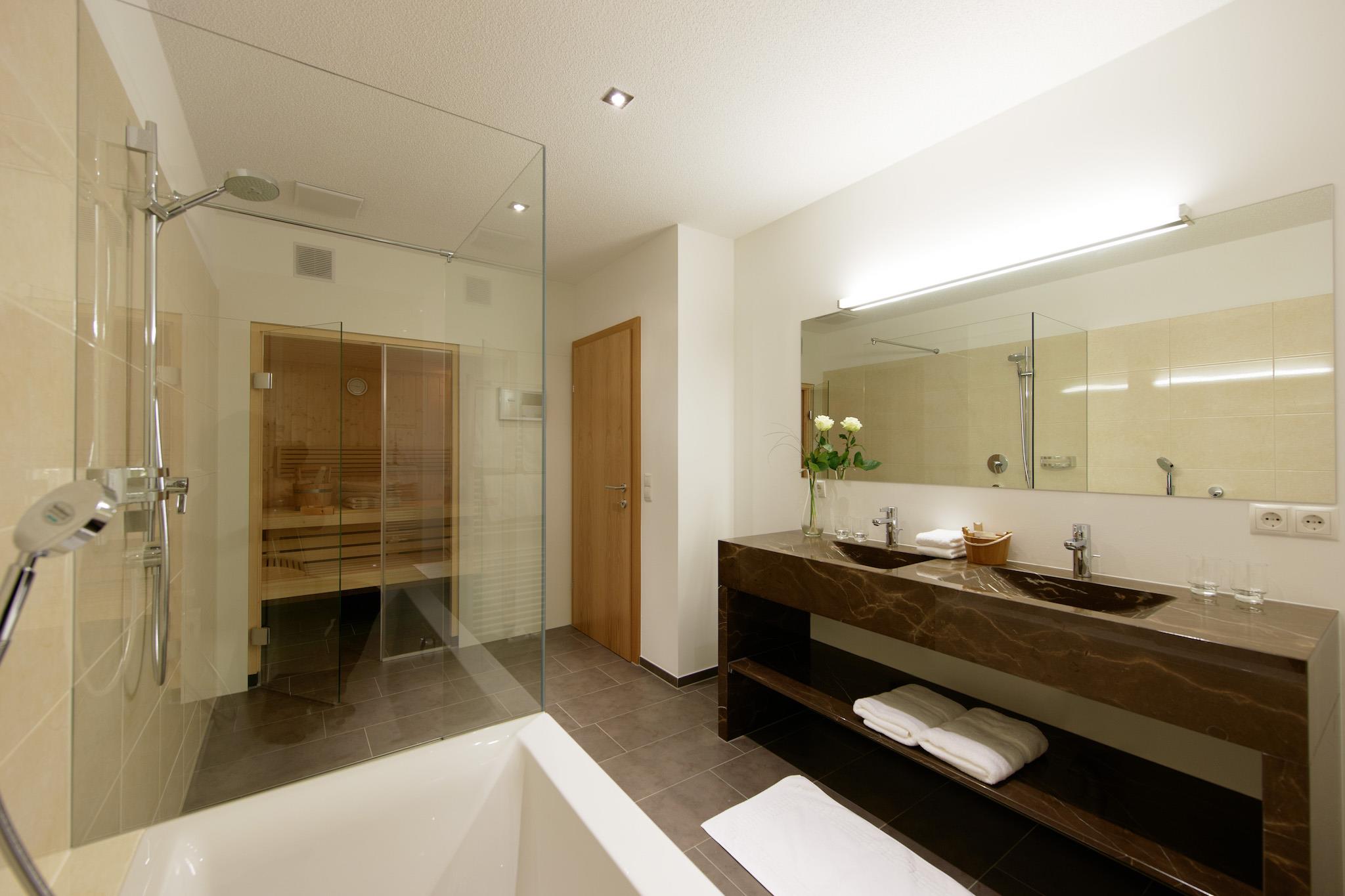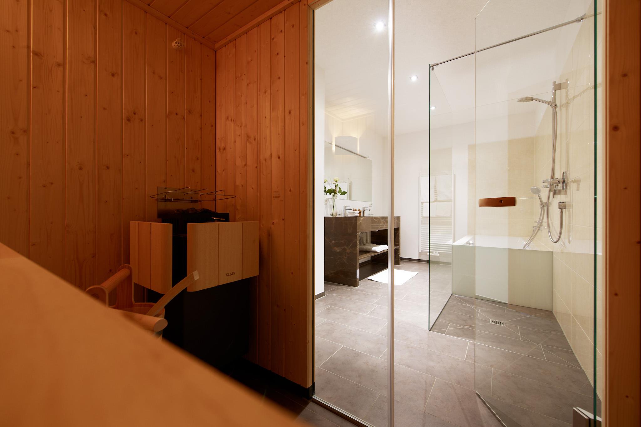 Wohlfühlappartement 65 m² (mit privater Sauna und Terrasse) bestehend aus 1 Schlafzimmer, Wohnzimmer, separate Küche, Badezimmer mit Dusche und Badewanne, separates WC, private Saunakabine mit finnischer Sauna und Sanarium, Sonnenterrasse; elegant und gemütlich eingerichtet, TV, Telefon, Gratis-Internet-Zugang, Radio und Dockingstation, DVD- und Blueray Player, Brötchenservice,Service - täglich außer Mittwoch und Sonntag. Freuen Sie sich auf edle Stoffe, warme Holztöne und aussergewöhnliche Details. Unsere Appartements sind NICHTRAUCHER APPARTEMENTS! Wir danken für Ihr Verständnis.