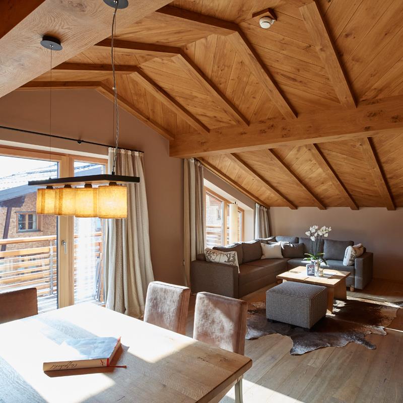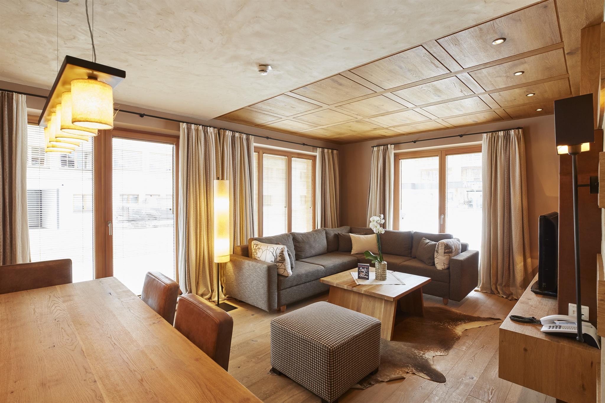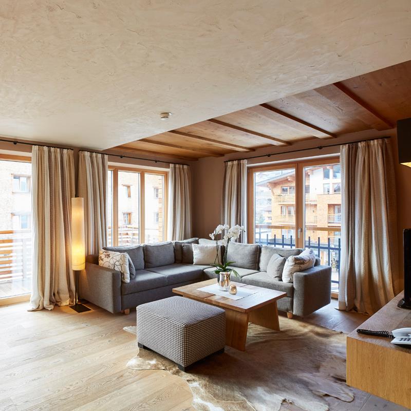 Skiurlaub in den Appartements AURIGA im Zentrum von Lech 4-Sterne Superior auch im Appartement Wer seine Unabhängigkeit besonders schätzt und dennoch nicht auf die Annehmlichkeiten eines 4-Sterne Superior Hotels verzichten möchte, findet mit einem unserer Appartements die ideale Möglichkeit, einen entspannten Urlaub in Lech am Arlberg zu erleben. Als Appartementgast können Sie selbstverständlich die Wellness- und Spa-Welt unseres Hotels ohne Aufpreis nutzen. Auf Wunsch können Sie auch gerne Frühstück oder Halbpension in unserem Hotel dazu buchen. Für Selbstversorger stehen in der näheren Umgebung zahlreiche Restaurants und Einkaufsmöglichkeiten zur Verfügung. Luxuriöses Wohnen im Appartement – direkt gegenüber dem Hotel Unsere 10 Appartements befinden sich im Appartementhaus, direkt gegenüber unserem Haupthaus. Im Jahr 2011 haben wir unser Appartementhaus komplett neu erbaut und dabei - ganz in der Tradition unseres Hauses - eine exklusive Wohnwelt mit luxuriöser Urlaubsatmosphäre geschaffen. Hinter der Schindelfassade verbergen sich 10 Appartements unterschiedlicher Größe, denen allen eines gemeinsam ist: extra großzügiger Komfort und eine gelungene Mischung aus Tradition und Moderne. Mit viel Holz, ausgesuchten Details, Bildern und Dekorationen bieten unsere Appartements einen heimeligen Rückzugsort zum Wohlfühlen. Helle Farben, feinste Stoffe und wärmende Kachelöfen tragen zum gemütlich-edlen Ambiente genauso bei. Verbindungsgang zum Hotel Um vom Appartementhaus ins Hotel zu gelangen, müssen Sie erst gar nicht vor die Tür gehen. Ein unterirdischer Gang verbindet die beiden Häuser, führt vorbei an Kinderspielraum, Seminarraum und Golflounge mit Golfsimulator (im Untergeschoß des Appartementhauses) und endet im Hotel. So können Sie, wenn Sie unseren Wellness- und Spabereich benutzen möchten, einfach in den Bademantel schlüpfen und trockenen Fußes in die exklusive Wohlfühl-Welt unseres Hotels gelangen. Dort stehen Schließfächer bereit, falls Sie etwas versperren möchten.