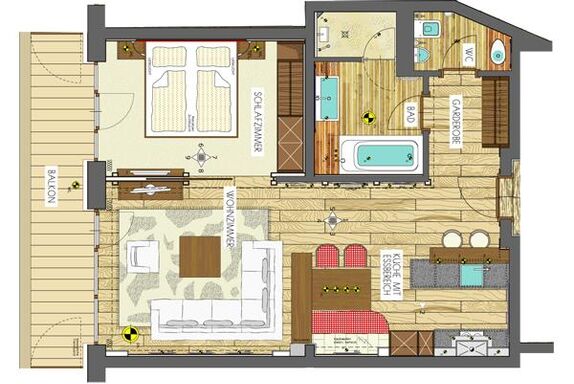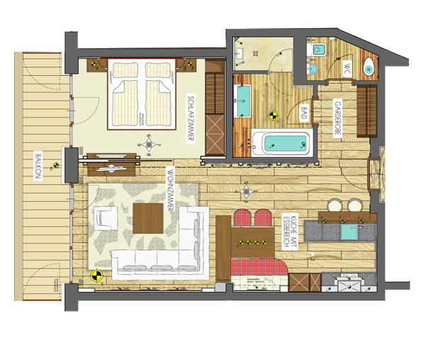 Die Nichtraucher-Appartements A befinden sich auf der ersten und zweiten Etage des Auriga-Appartementhauses. Dieser Typ Ferienwohnung überzeugt mit edlem Wohnkomfort, Helligkeit und Gemütlichkeit. Das Badezimmer ist mit Duschkabine und Badewanne ausgestattet. Vom Schlafzimmer und Wohnraum erreichen Sie den Balkon mit herrlicher Aussicht auf die Berge.
