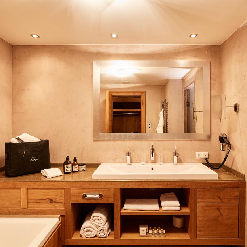 Skiurlaub in den Appartements AURIGA im Zentrum von Lech 4-Sterne Superior auch im Appartement Wer seine Unabhängigkeit besonders schätzt und dennoch nicht auf die Annehmlichkeiten eines 4-Sterne Superior Hotels verzichten möchte, findet mit einem unserer Appartements die ideale Möglichkeit, einen entspannten Urlaub in Lech am Arlberg zu erleben. Als Appartementgast können Sie selbstverständlich die Wellness- und Spa-Welt unseres Hotels ohne Aufpreis nutzen. Auf Wunsch können Sie auch gerne Frühstück oder Halbpension in unserem Hotel dazu buchen. Für Selbstversorger stehen in der näheren Umgebung zahlreiche Restaurants und Einkaufsmöglichkeiten zur Verfügung. Luxuriöses Wohnen im Appartement – direkt gegenüber dem Hotel Unsere 10 Appartements befinden sich im Appartementhaus, direkt gegenüber unserem Haupthaus. Im Jahr 2011 haben wir unser Appartementhaus komplett neu erbaut und dabei - ganz in der Tradition unseres Hauses - eine exklusive Wohnwelt mit luxuriöser Urlaubsatmosphäre geschaffen. Hinter der Schindelfassade verbergen sich 10 Appartements unterschiedlicher Größe, denen allen eines gemeinsam ist: extra großzügiger Komfort und eine gelungene Mischung aus Tradition und Moderne. Mit viel Holz, ausgesuchten Details, Bildern und Dekorationen bieten unsere Appartements einen heimeligen Rückzugsort zum Wohlfühlen. Helle Farben, feinste Stoffe und wärmende Kachelöfen tragen zum gemütlich-edlen Ambiente genauso bei. Verbindungsgang zum Hotel Um vom Appartementhaus ins Hotel zu gelangen, müssen Sie erst gar nicht vor die Tür gehen. Ein unterirdischer Gang verbindet die beiden Häuser, führt vorbei an Kinderspielraum, Seminarraum und Golflounge mit Golfsimulator (im Untergeschoß des Appartementhauses) und endet im Hotel. So können Sie, wenn Sie unseren Wellness- und Spabereich benutzen möchten, einfach in den Bademantel schlüpfen und trockenen Fußes in die exklusive Wohlfühl-Welt unseres Hotels gelangen. Dort stehen Schließfächer bereit, falls Sie etwas versperren möchten.