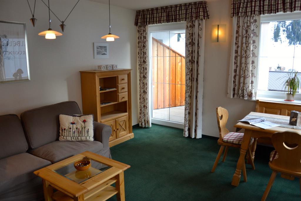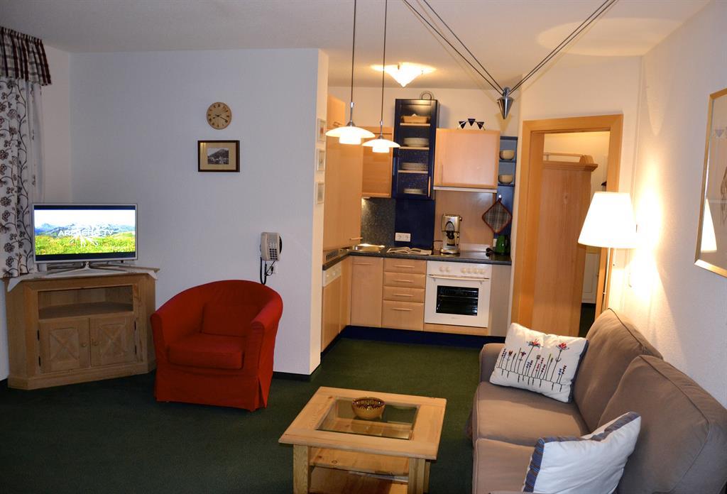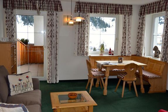 Ferienwohnung III - 50 m² Sehr schöne und äußerst helle Ferienwohnung mit einer sehr gemütlichen und rustikalen Einrichtung. Vom Wohnzimmer bzw. vom Balkon (neue Terrassemmöbel) genießen sie den einzigartigen Blick in Richtung Rüfikopf. Ideal für zwei Erwachsene, aber auch für Familien mit max. zwei Kinder sehr gut geeignet. Eine Belegung mit 3 - 4 Erwachsenen ist ebenfalls möglich. Das Appartement ist voll ausgestattet und verfügt über ein eigenes Schlafzimmer mit Möglichkeit für ein Zusatzbett, einen Wohnraum mit hochwertiger Küche, hat ein Vorraum sowie ein separates Bad und WC. Die Küche hat selbstvertändlich einen 4-Platten-Ceran-Herd, eine Spülmaschine, neue und moderne Kapsel-Kaffeemaschine und einen Wasserkocher, sowie genügend Geschirr. Für ein besonders behagliches Wohngefühl sorgt unsere kontrollierte Wohnraumbelüftung sowie die einzelraumgesteuerte Fußbodenheizung. Außerdem bieten wir unseren Gästen: Zimmersafe, Internet via W-Lan, Radio mit Anschlussmöglichkeit für I-Pod und USB, Sat-TV, Telefon, Skischuhheizung, Wasch- und Trockenraum, Personenlift und eine schöne Saunaanlage zur freien Benützung. Keine Angst um Ihren PKW - er hat auch Urlaub und parkt inzwischen kostenlos in unserer Tiefgarage. Hinweis: Die Ferienwohnung befindet sich in einem neuwertigen und liebevoll eingerichteten Zustand. NEU: LED-TV der neuesten Generation inkl. 3D und Internet-Funktion mittels W-Lan.
