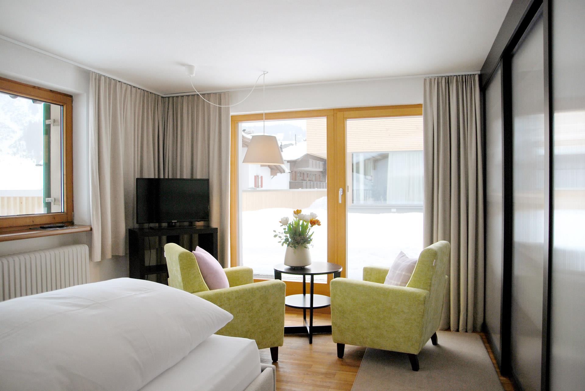 Grosse Doppelzimmer mit Bad und WC separat, LCD-Flat, Telefon, Safe, Fön, Sitzecke oder kuschelige Polstersessel und teils Balkon.