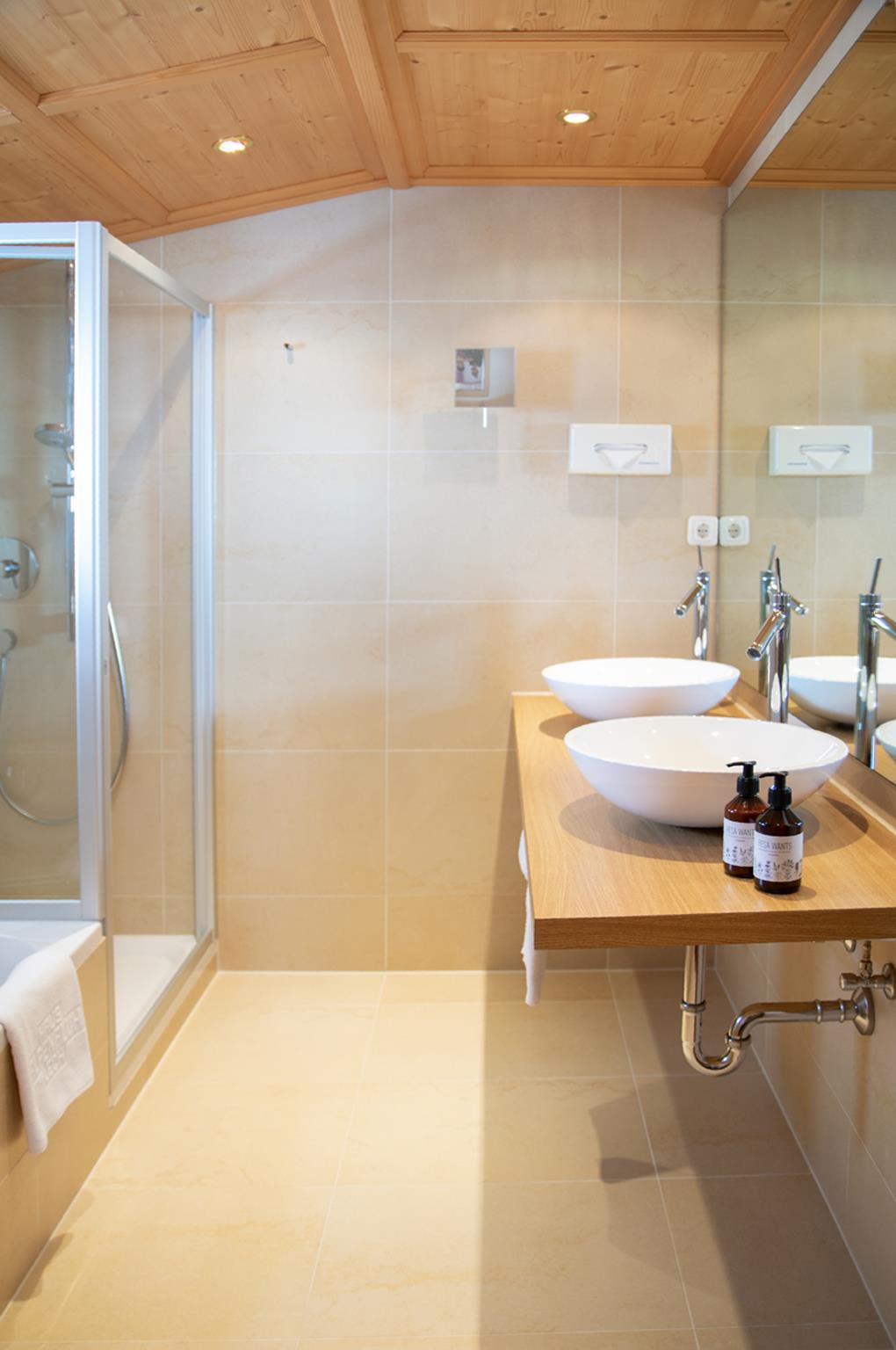 ALLES FALLEN LASSEN... und die so wohl kuscheligen als auch großzügigen, mit viel Liebe zum Detail eingerichteten Zimmer genießen. Wir verarbeiten heimische Hölzer, natürliche Materialien und warme Farben.