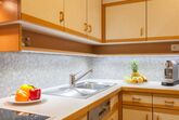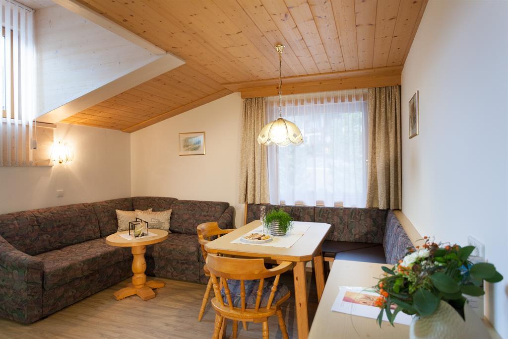 Wohnung im 2. Stock für 2-3 Personen - 1 Schlafzimmer mit 1 Doppel- und 1 Einzelbett, Küche, Wohnraum mit Essecke und Couch, Dusche, WC, Südbalkon. Zu unseren Wohnungen kann noch ein Komfort-Doppelzimmer zugebucht werden.
