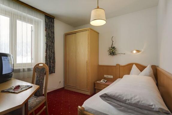 Einzelzimmer mit Kabel-TV, Radio, Telefon und Safe. Badezimmer mit Dusche und WC. Frühstücksbuffet und Gästetaxe inkludiert.