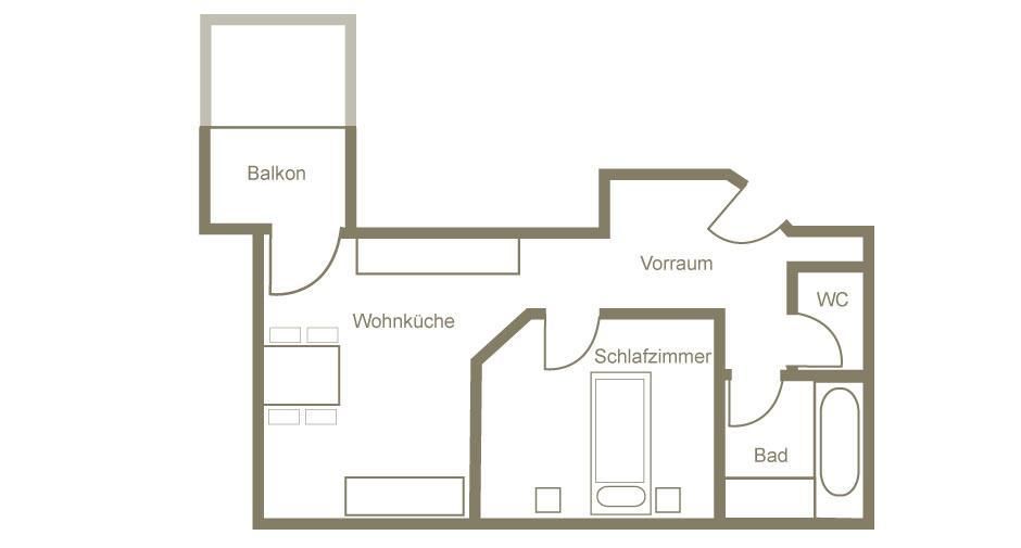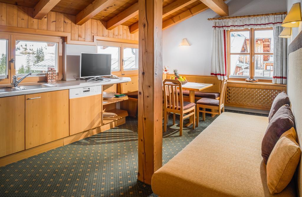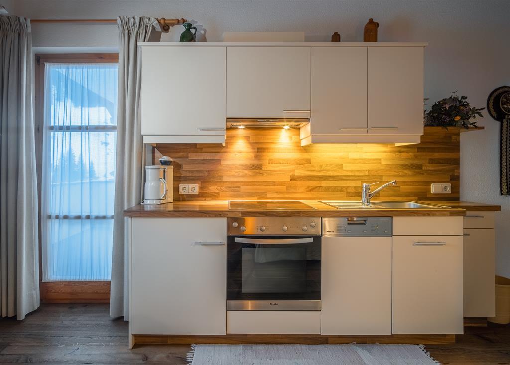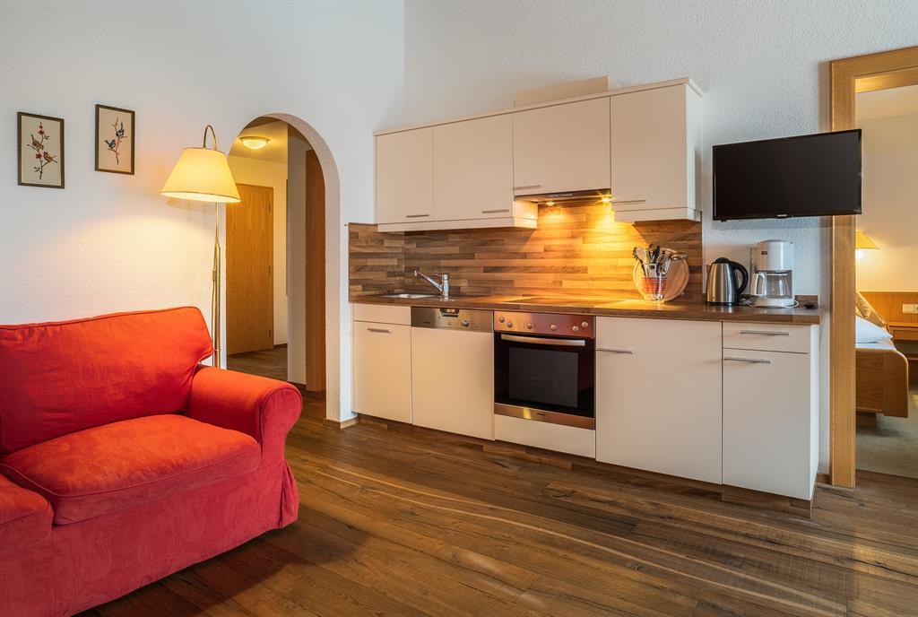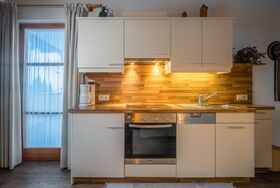 2 Personen Appartement mit Schlafzimmer, neue Wohnküche komplett mit Backrohr, Ceran Kochfeld, Geschirrspüler, Kühlschrank, Geschirr, Töpfe, Couch, Frühstück kann dazu gebucht werden.