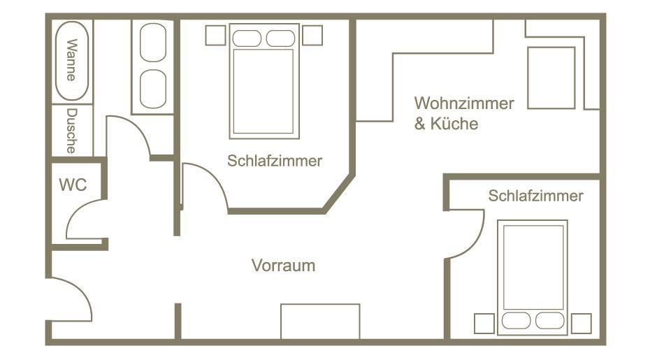 75 m2 große Wohnung für 4 Personen mit zwei getrennten Schlafzimmern, großer Wohnküche, Bad mit Wanne und Dusche, sep. WC, Radio, TV, Telefon, Brötchenservice, frische Milch vom Hof, Frühstück möglich,
