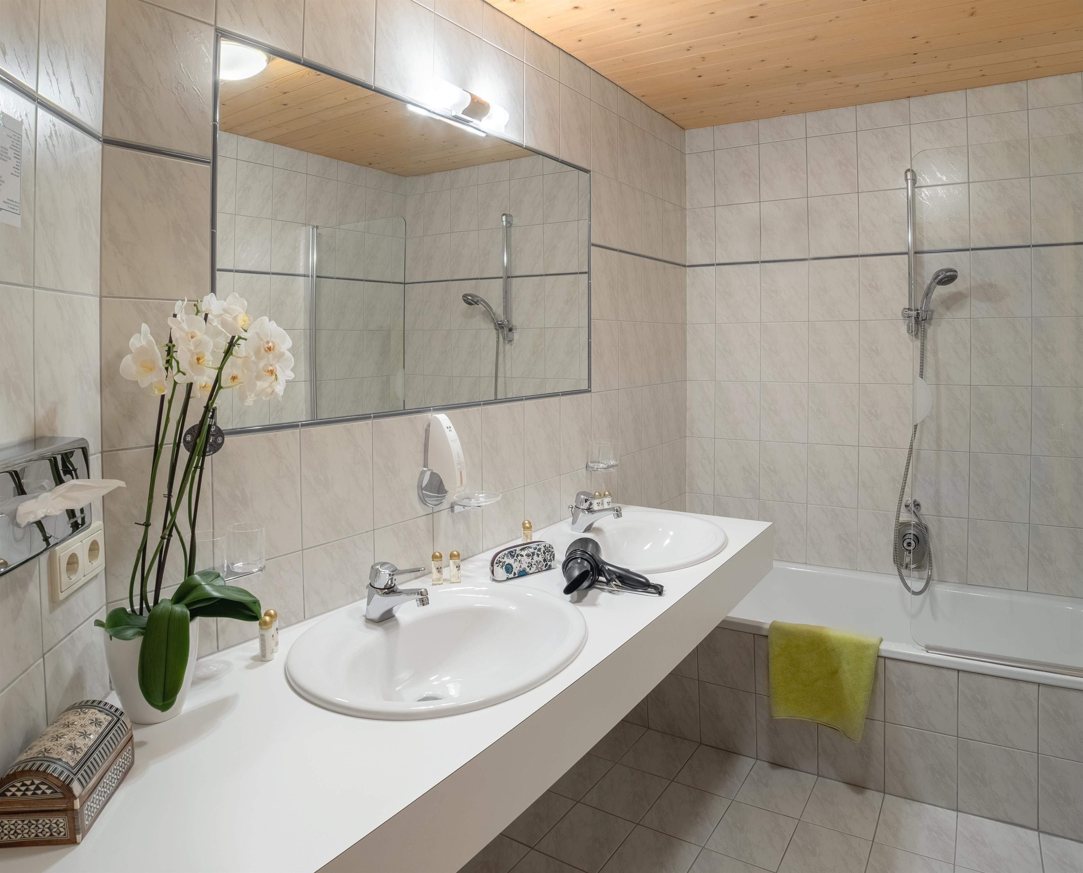 Jedes Zimmer ist mit Bad & WC (mit Bodenheizung), Radio, Tv, Telefon und gratis W-Lan ausgestattet.