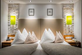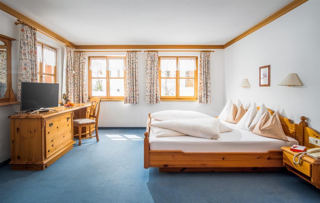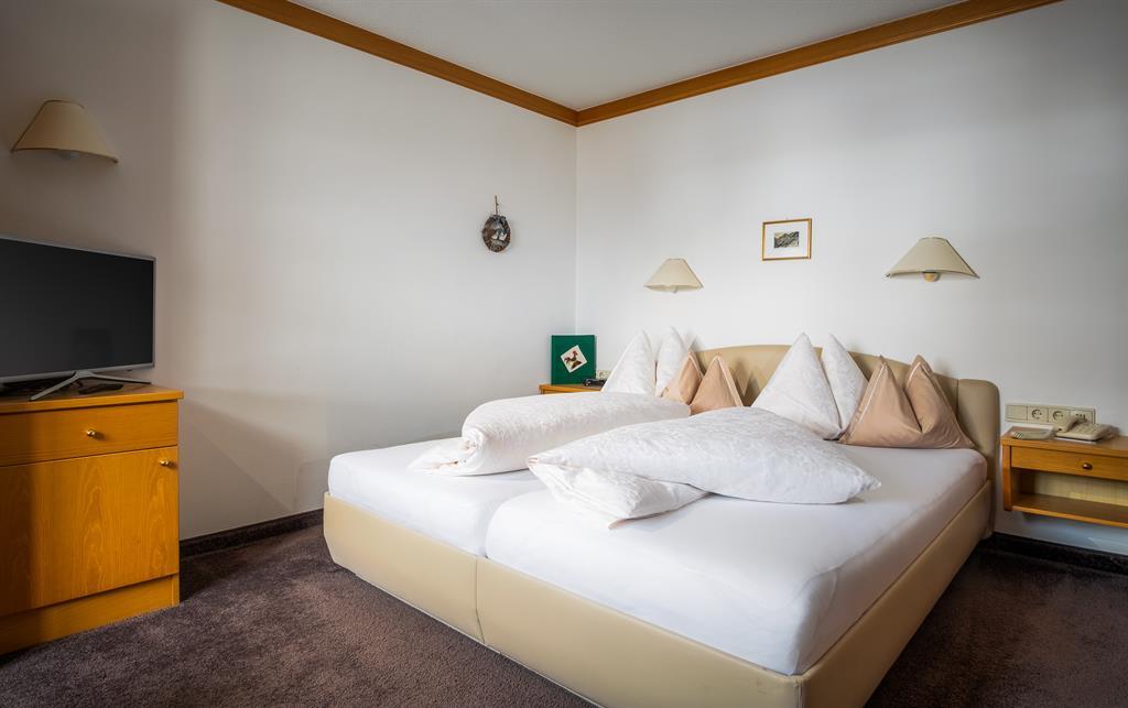 Hell und freundlich eingerichtetes Zimmer mit Badewanne und Dusche, Schreibtisch, separatem WC, Radio, Sat-TV, Telefon, Halbpension an 4 Tagen der Woche im Winter möglich