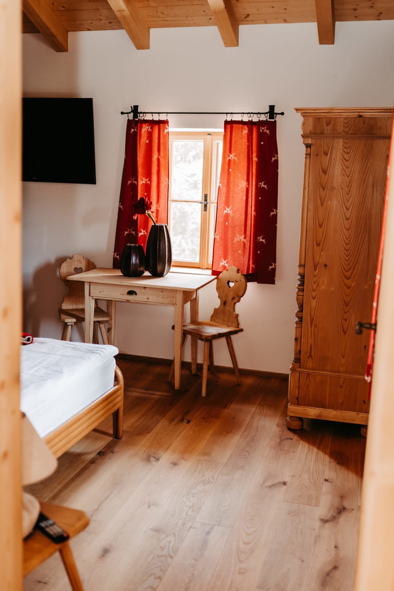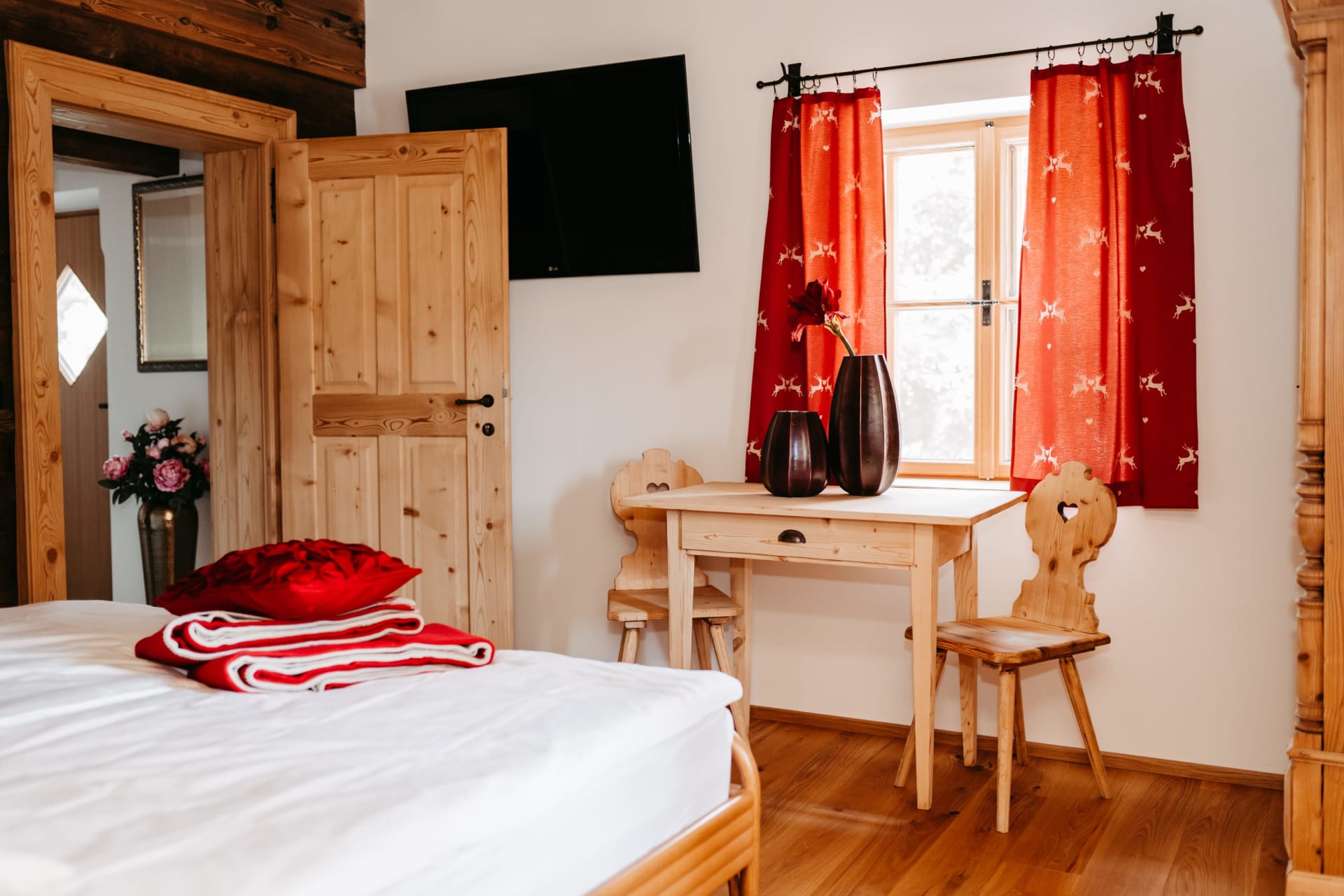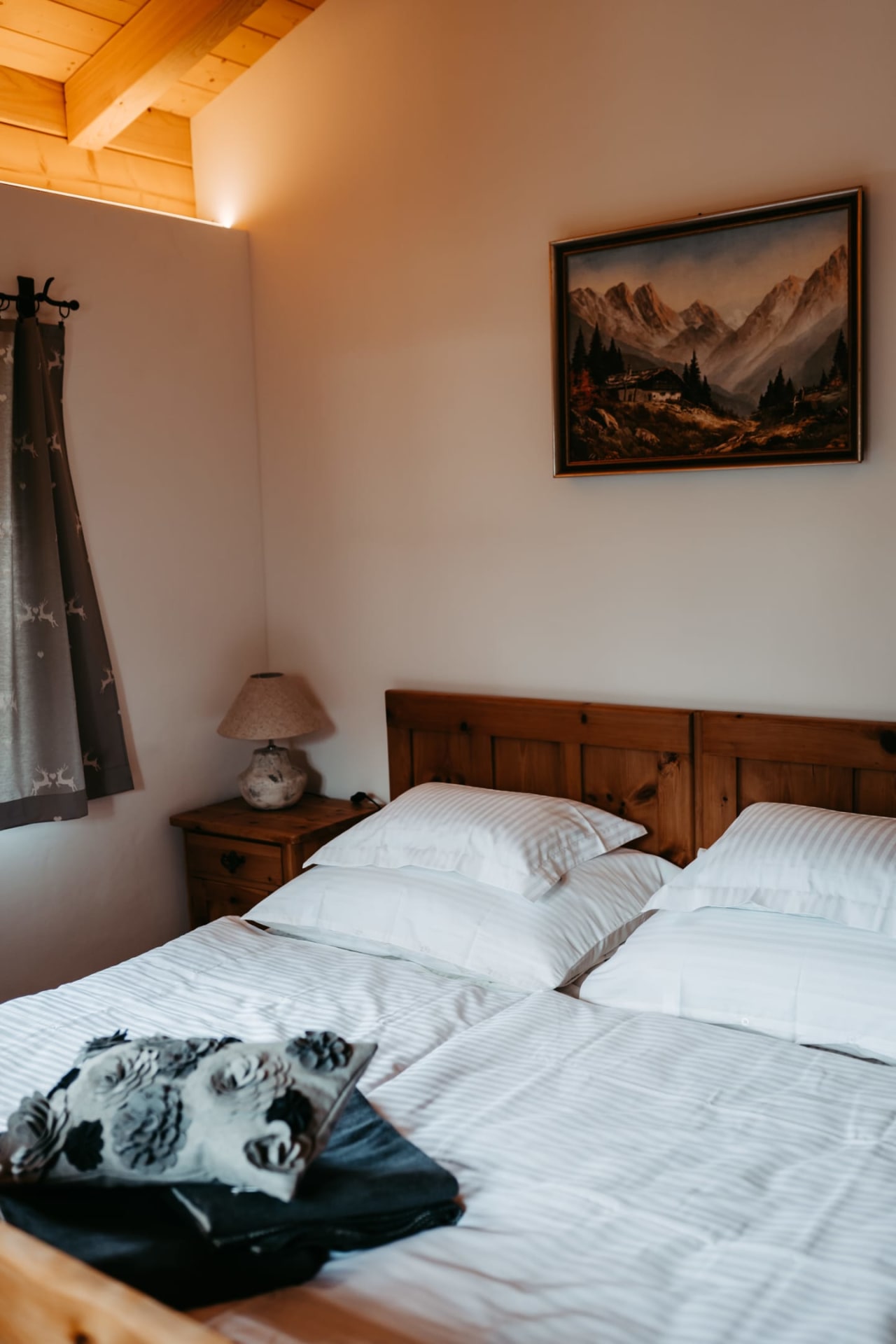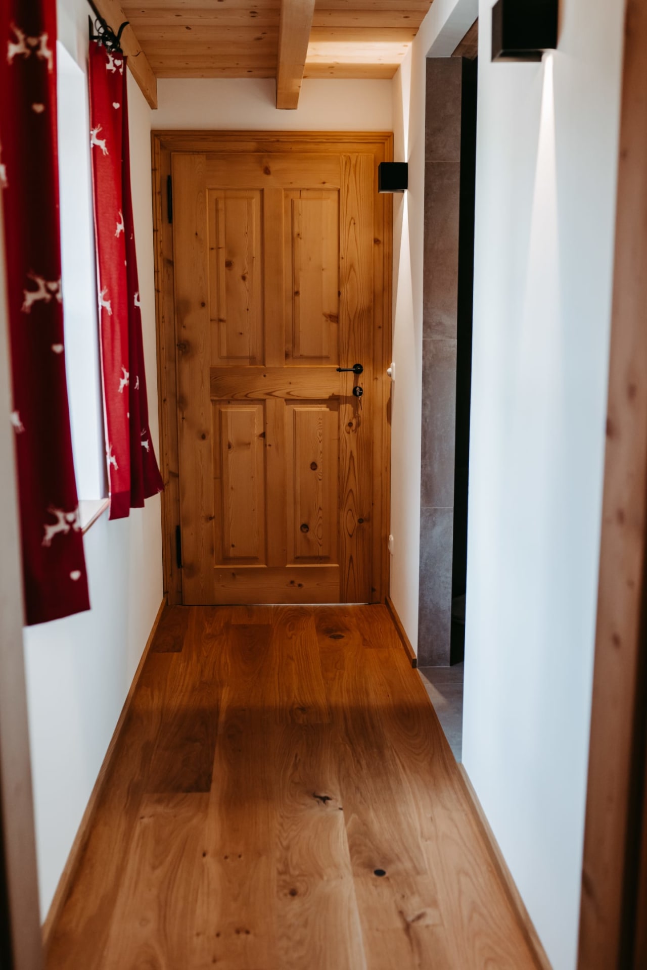 Das Doppelzimmer liegt gleich neben dem Chalet und kann gerne in Verbindung mit dem Chalet gebucht werden. Es kann auch als eigenständiges Doppelzimmer gebucht werden und verfügt über ein Bad mit WC und Dusche.