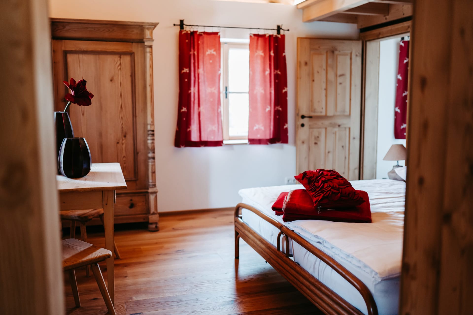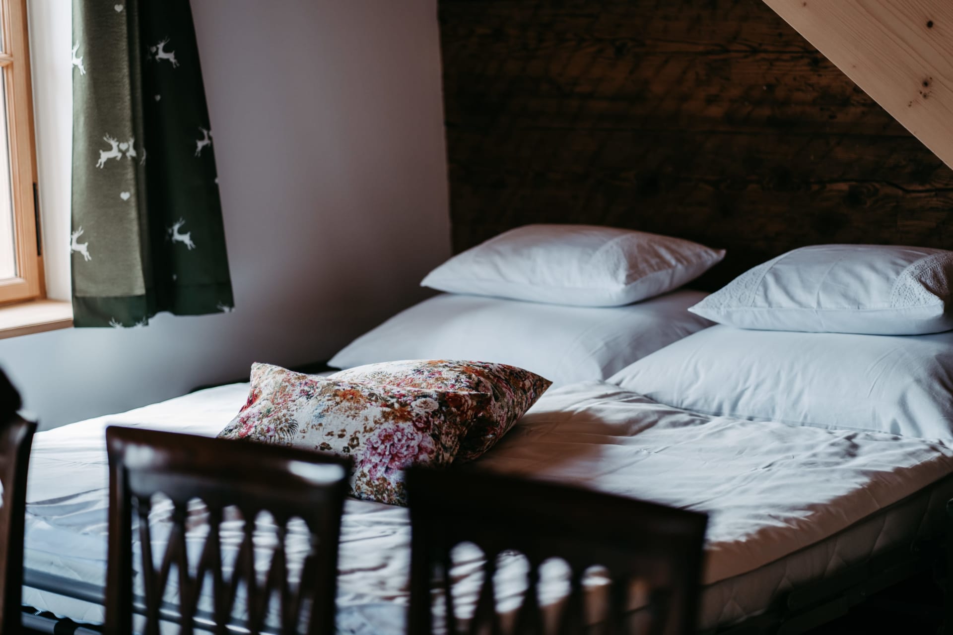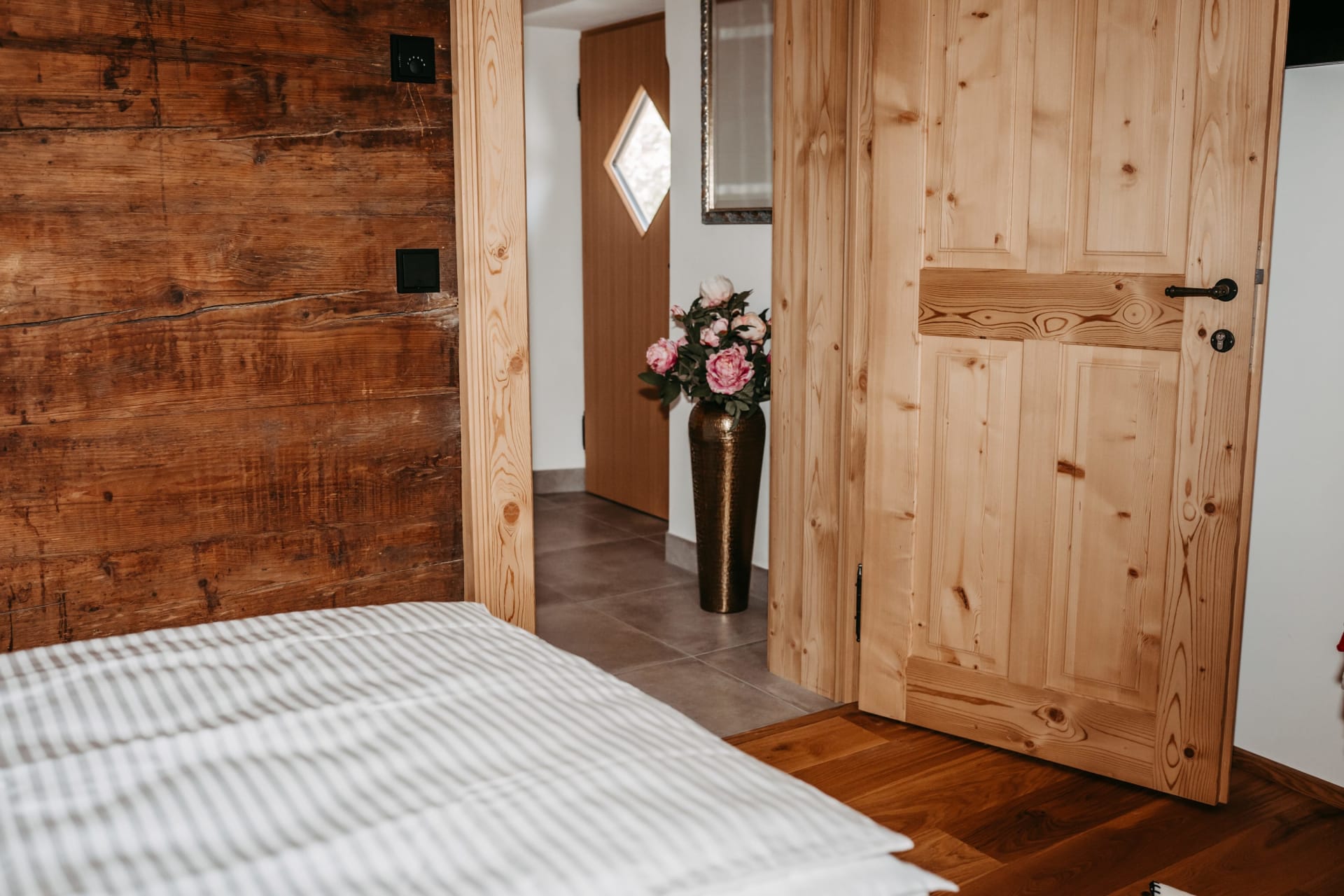 Das Doppelzimmer liegt gleich neben dem Chalet und kann gerne in Verbindung mit dem Chalet gebucht werden. Es kann auch als eigenständiges Doppelzimmer gebucht werden und verfügt über ein Bad mit WC und Dusche.
