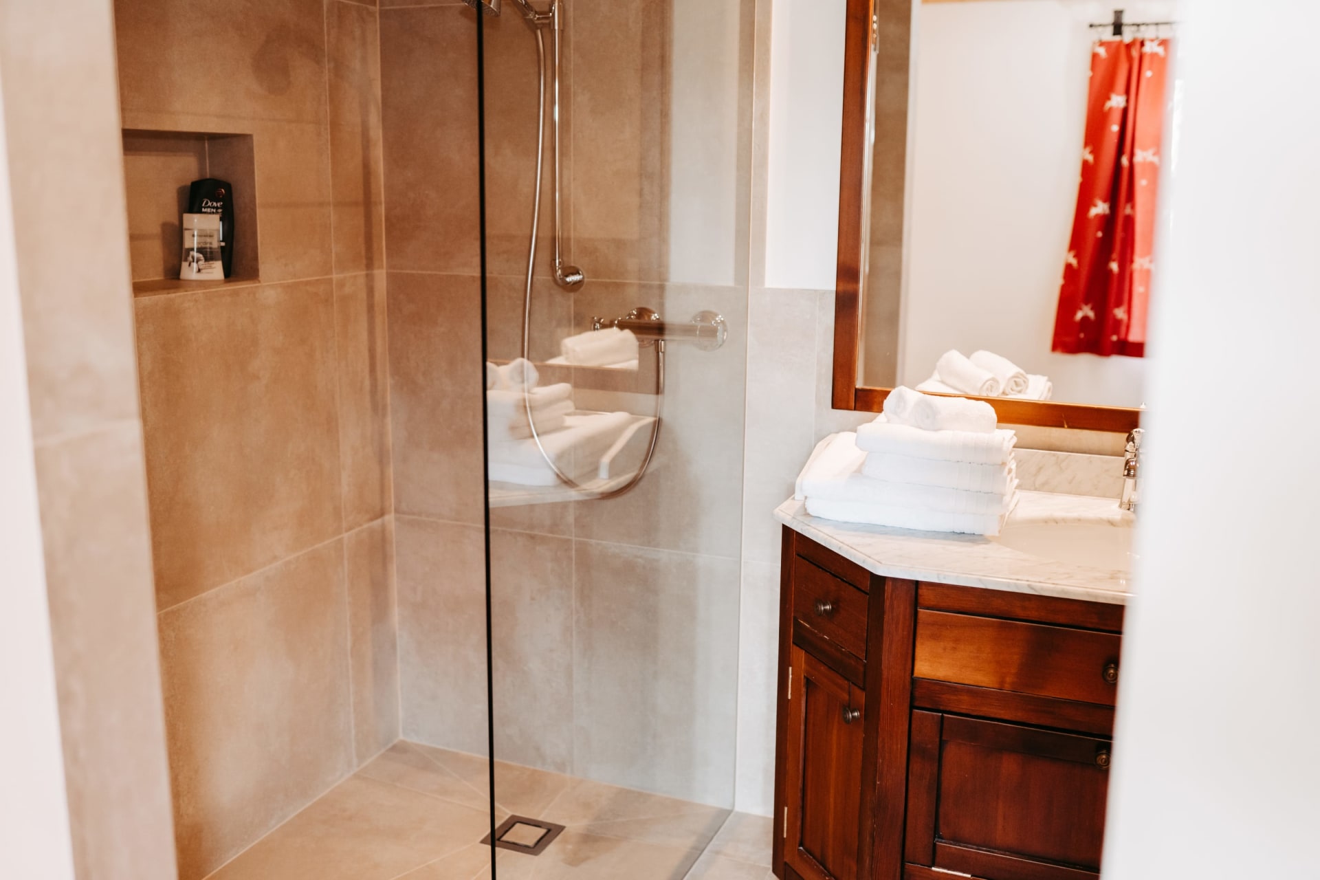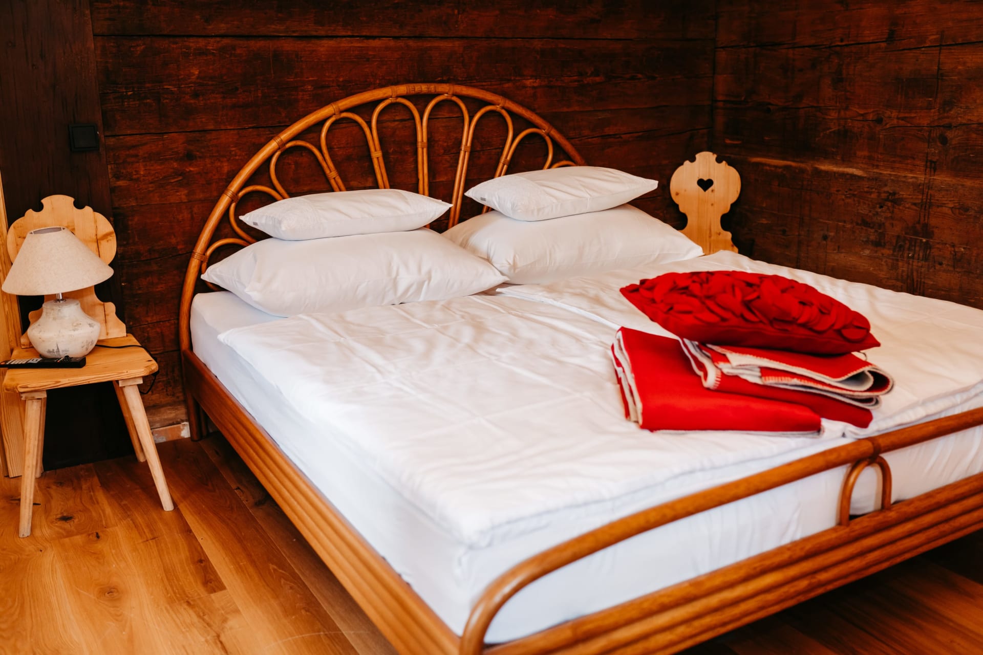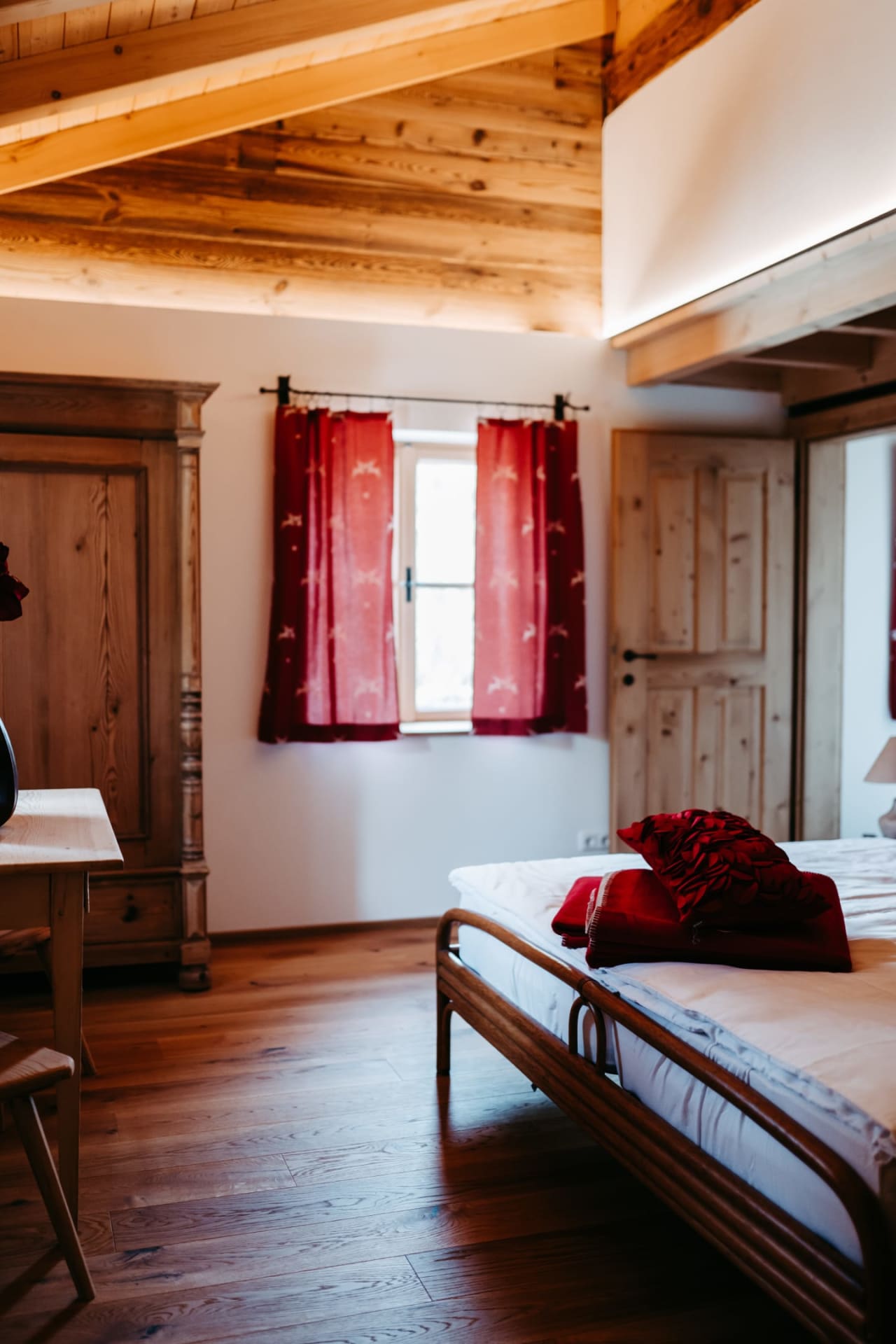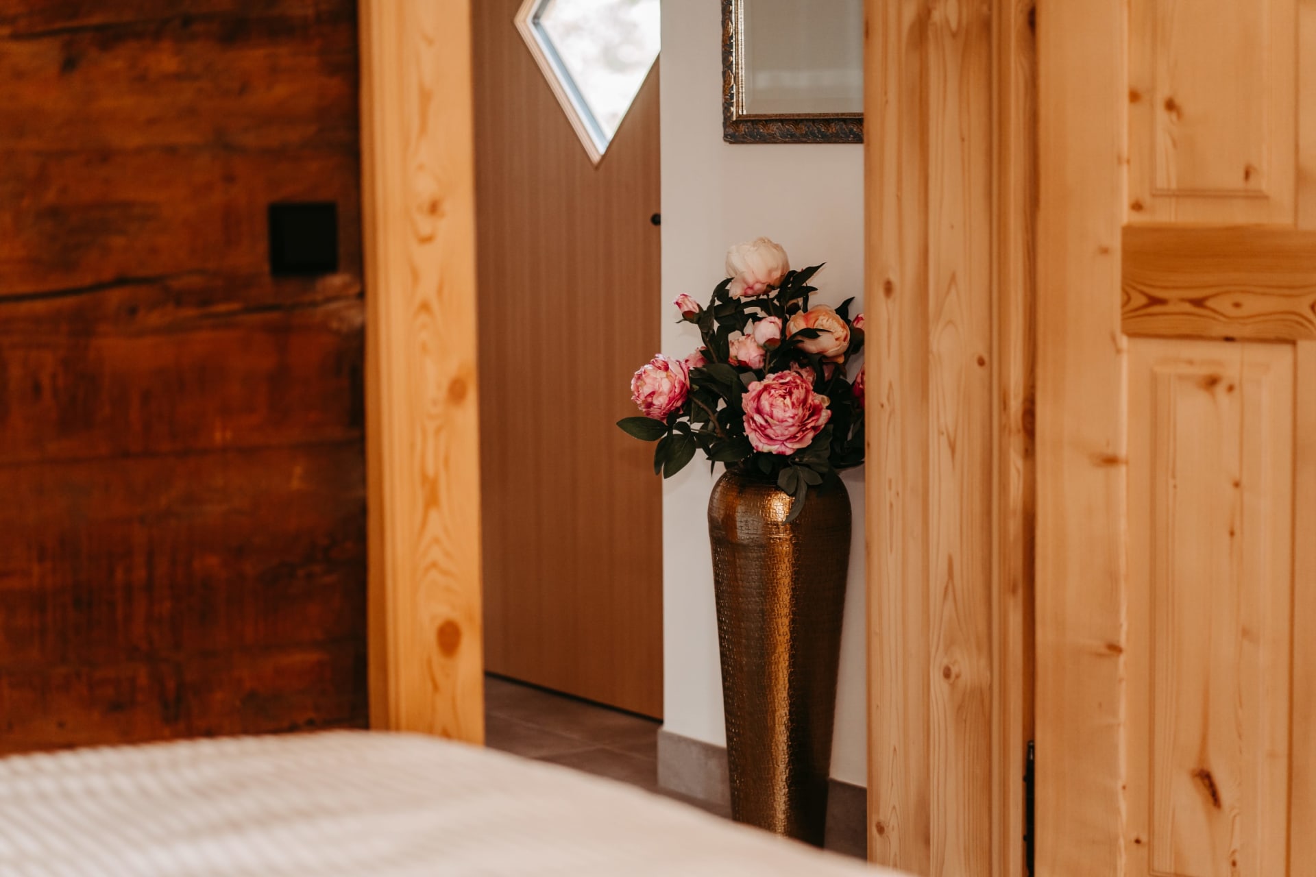 Das Doppelzimmer liegt gleich neben dem Chalet und kann gerne in Verbindung mit dem Chalet gebucht werden. Es kann auch als eigenständiges Doppelzimmer gebucht werden und verfügt über ein Bad mit WC und Dusche.